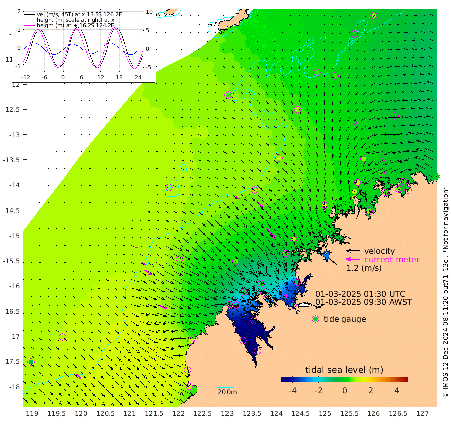37cm/s 124T +10cm/s rms + 1cm/s 1T. NWSBRW 205m 50cm/s 138T +11cm/s rms + 6cm/s -110T. NWSROW 199m 115cm/s 143T +5cm/s rms + 2cm/s 65T. CAM050 58m 82cm/s 141T +12cm/s rms + 5cm/s 92T. CAM100 99m 18cm/s 120T +7cm/s rms + 1cm/s -85T. KIM400 396m 38cm/s 120T +9cm/s rms + 5cm/s -119T. KIM200 208m 70cm/s 127T +11cm/s rms + 5cm/s -147T. KIM100 99m 77cm/s 110T +8cm/s rms + 3cm/s -103T. KIM050 59m 30cm/s -139T +4cm/s rms + 2cm/s 23T. TIMORS88 91m -69cm Imperieuse Reef 88cm Mermaid Reef 150cm Broome 122cm Cape Baskerville 32cm Red Bluff 102cm Cape Boileau 82cm Scott Reef (WA) 45cm Ashmore Reef -102cm Karrakatta Bay -146cm Sunday Island -431cm Valentine Island -506cm Derby -371cm Port Usborne -24cm Bedford Islands -28cm Yampi Sound (Koolan Island) 26cm Macleay Island 60cm Adele Island 184cm Browse Island -107cm Shale Island -114cm Lizard Island 33cm Hall Point 43cm Degerando Island 76cm White Island 66cm Skua No. 4 Well 35cm Jabiru 113cm Maret Island 102cm Baudin Island 96cm Cape Voltaire (Krait Bay) -5cm Dillon Shoal 65cm Laminaria 65cm Port Warrender 44cm Troughton Island 97cm Cassini Island 67cm West Holothuria Reef Offshore 33cm Jar Island 74cm Lynher Bank 94cm Heywood Shoal 30cm Pee Shoal 1cm Van Cloon Shoal 40cm Carronade Island 47cm Guy Point 34cm Napier Broome Bay 0cm Lesueur Island
