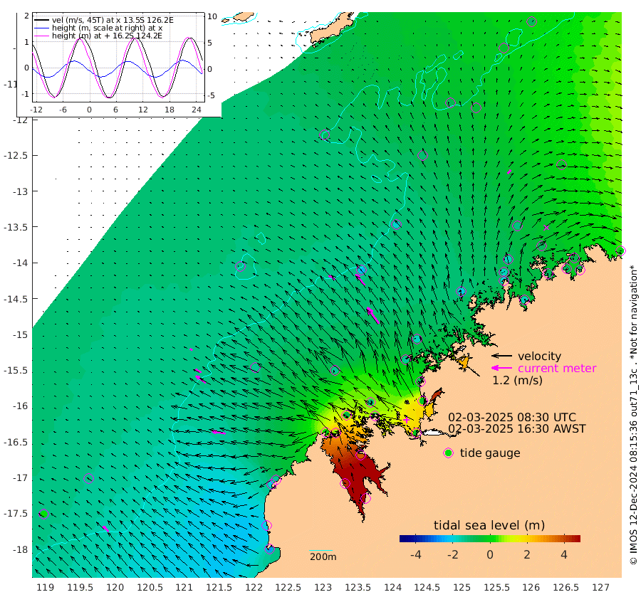42cm/s -56T +10cm/s rms + 1cm/s 1T. NWSBRW 205m 46cm/s -47T +11cm/s rms + 6cm/s -110T. NWSROW 199m 119cm/s -36T +5cm/s rms + 2cm/s 65T. CAM050 58m 84cm/s -39T +12cm/s rms + 5cm/s 92T. CAM100 99m 17cm/s -67T +7cm/s rms + 1cm/s -85T. KIM400 396m 39cm/s -63T +9cm/s rms + 5cm/s -119T. KIM200 208m 71cm/s -55T +11cm/s rms + 5cm/s -147T. KIM100 99m 83cm/s -79T +8cm/s rms + 3cm/s -103T. KIM050 59m 27cm/s 41T +4cm/s rms + 2cm/s 23T. TIMORS88 91m 28cm Imperieuse Reef -134cm Mermaid Reef -255cm Broome -200cm Cape Baskerville -135cm Red Bluff -196cm Cape Boileau -126cm Scott Reef (WA) -93cm Ashmore Reef 21cm Karrakatta Bay 68cm Sunday Island 432cm Valentine Island 535cm Derby 360cm Port Usborne -66cm Bedford Islands -85cm Yampi Sound (Koolan Island) -131cm Macleay Island -140cm Adele Island -225cm Browse Island -18cm Shale Island -22cm Lizard Island -102cm Hall Point -150cm Degerando Island -177cm White Island -119cm Skua No. 4 Well -54cm Jabiru -199cm Maret Island -175cm Baudin Island -184cm Cape Voltaire (Krait Bay) -42cm Dillon Shoal -96cm Laminaria -166cm Port Warrender -99cm Troughton Island -173cm Cassini Island -128cm West Holothuria Reef Offshore -92cm Jar Island -136cm Lynher Bank -184cm Heywood Shoal -78cm Pee Shoal -45cm Van Cloon Shoal -90cm Carronade Island -102cm Guy Point -93cm Napier Broome Bay -9cm Lesueur Island
