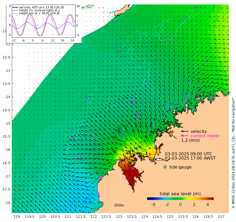 43cm/s -57T +10cm/s rms + 1cm/s 1T. NWSBRW 205m 47cm/s -47T +11cm/s rms + 6cm/s -110T. NWSROW 199m 121cm/s -36T +5cm/s rms + 2cm/s 65T. CAM050 58m 87cm/s -40T +12cm/s rms + 5cm/s 92T. CAM100 99m 18cm/s -67T +7cm/s rms + 1cm/s -85T. KIM400 396m 40cm/s -63T +9cm/s rms + 5cm/s -119T. KIM200 208m 72cm/s -54T +11cm/s rms + 5cm/s -147T. KIM100 99m 85cm/s -79T +8cm/s rms + 3cm/s -103T. KIM050 59m 27cm/s 36T +4cm/s rms + 2cm/s 23T. TIMORS88 91m 33cm Imperieuse Reef -134cm Mermaid Reef -257cm Broome -201cm Cape Baskerville -144cm Red Bluff -197cm Cape Boileau -124cm Scott Reef (WA) -90cm Ashmore Reef 27cm Karrakatta Bay 70cm Sunday Island 458cm Valentine Island 559cm Derby 381cm Port Usborne -63cm Bedford Islands -85cm Yampi Sound (Koolan Island) -117cm Macleay Island -137cm Adele Island -220cm Browse Island -14cm Shale Island -15cm Lizard Island -98cm Hall Point -151cm Degerando Island -180cm White Island -113cm Skua No. 4 Well -45cm Jabiru -195cm Maret Island -175cm Baudin Island -183cm Cape Voltaire (Krait Bay) -39cm Dillon Shoal -95cm Laminaria -167cm Port Warrender -90cm Troughton Island -170cm Cassini Island -126cm West Holothuria Reef Offshore -90cm Jar Island -137cm Lynher Bank -186cm Heywood Shoal -71cm Pee Shoal -43cm Van Cloon Shoal -89cm Carronade Island -101cm Guy Point -93cm Napier Broome Bay -5cm Lesueur Island