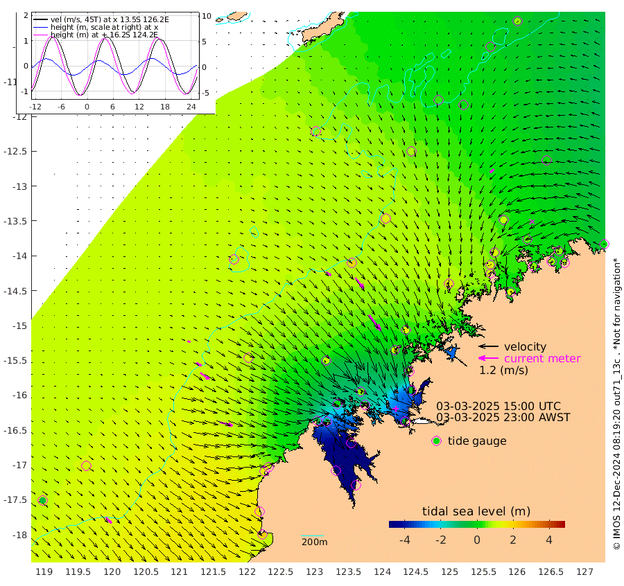 36cm/s 123T +10cm/s rms + 1cm/s 1T. NWSBRW 205m 47cm/s 135T +11cm/s rms + 6cm/s -110T. NWSROW 199m 120cm/s 143T +5cm/s rms + 2cm/s 65T. CAM050 58m 85cm/s 141T +12cm/s rms + 5cm/s 92T. CAM100 99m 18cm/s 117T +7cm/s rms + 1cm/s -85T. KIM400 396m 37cm/s 119T +9cm/s rms + 5cm/s -119T. KIM200 208m 67cm/s 126T +11cm/s rms + 5cm/s -147T. KIM100 99m 82cm/s 105T +8cm/s rms + 3cm/s -103T. KIM050 59m 32cm/s -131T +4cm/s rms + 2cm/s 23T. TIMORS88 91m -54cm Imperieuse Reef 107cm Mermaid Reef 213cm Broome 161cm Cape Baskerville 113cm Red Bluff 166cm Cape Boileau 98cm Scott Reef (WA) 62cm Ashmore Reef -66cm Karrakatta Bay -103cm Sunday Island -486cm Valentine Island -571cm Derby -406cm Port Usborne 18cm Bedford Islands 36cm Yampi Sound (Koolan Island) 63cm Macleay Island 98cm Adele Island 204cm Browse Island -43cm Shale Island -24cm Lizard Island 64cm Hall Point 108cm Degerando Island 140cm White Island 78cm Skua No. 4 Well 15cm Jabiru 157cm Maret Island 140cm Baudin Island 145cm Cape Voltaire (Krait Bay) 6cm Dillon Shoal 64cm Laminaria 130cm Port Warrender 58cm Troughton Island 133cm Cassini Island 97cm West Holothuria Reef Offshore 66cm Jar Island 107cm Lynher Bank 140cm Heywood Shoal 41cm Pee Shoal 26cm Van Cloon Shoal 73cm Carronade Island 77cm Guy Point 84cm Napier Broome Bay 2cm Lesueur Island