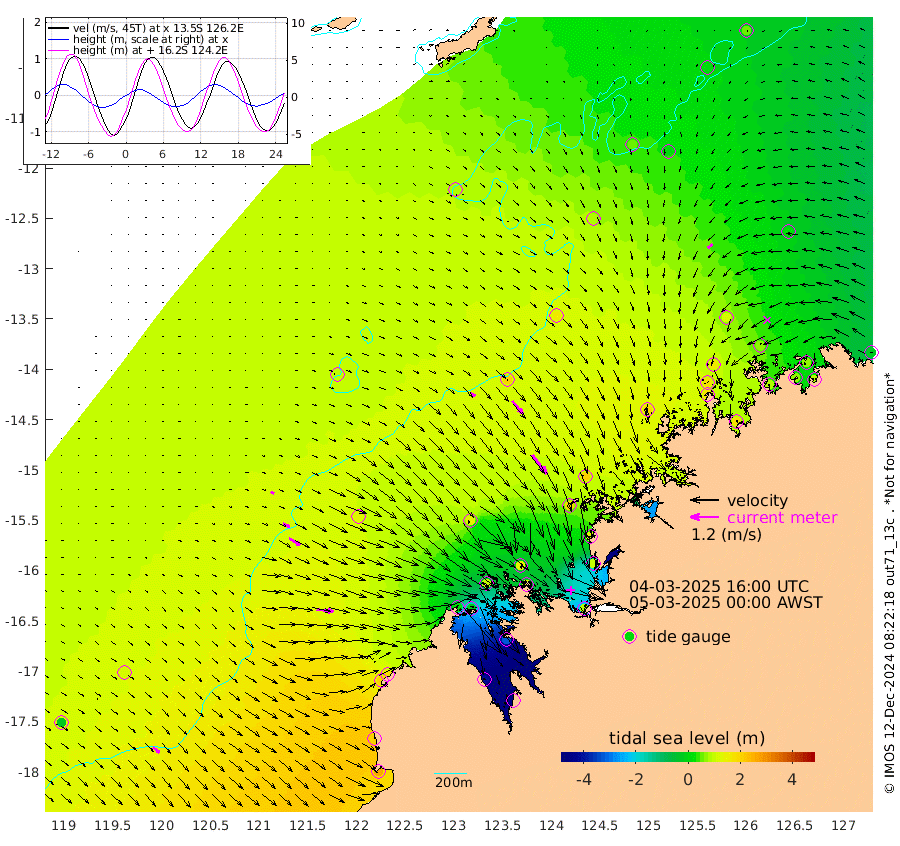 26cm/s 121T +10cm/s rms + 1cm/s 1T. NWSBRW 205m 37cm/s 130T +11cm/s rms + 6cm/s -110T. NWSROW 199m 101cm/s 143T +5cm/s rms + 2cm/s 65T. CAM050 58m 70cm/s 140T +12cm/s rms + 5cm/s 92T. CAM100 99m 15cm/s 112T +7cm/s rms + 1cm/s -85T. KIM400 396m 32cm/s 115T +9cm/s rms + 5cm/s -119T. KIM200 208m 56cm/s 122T +11cm/s rms + 5cm/s -147T. KIM100 99m 71cm/s 97T +8cm/s rms + 3cm/s -103T. KIM050 59m 27cm/s -128T +4cm/s rms + 2cm/s 23T. TIMORS88 91m -22cm Imperieuse Reef 115cm Mermaid Reef 266cm Broome 196cm Cape Baskerville 174cm Red Bluff 198cm Cape Boileau 102cm Scott Reef (WA) 76cm Ashmore Reef 16cm Karrakatta Bay -25cm Sunday Island -408cm Valentine Island -513cm Derby -330cm Port Usborne 100cm Bedford Islands 133cm Yampi Sound (Koolan Island) 147cm Macleay Island 145cm Adele Island 201cm Browse Island 86cm Shale Island 96cm Lizard Island 128cm Hall Point 181cm Degerando Island 203cm White Island 88cm Skua No. 4 Well 13cm Jabiru 195cm Maret Island 177cm Baudin Island 179cm Cape Voltaire (Krait Bay) 13cm Dillon Shoal 55cm Laminaria 175cm Port Warrender 72cm Troughton Island 160cm Cassini Island 111cm West Holothuria Reef Offshore 86cm Jar Island 133cm Lynher Bank 162cm Heywood Shoal 48cm Pee Shoal 28cm Van Cloon Shoal 70cm Carronade Island 72cm Guy Point 78cm Napier Broome Bay -23cm Lesueur Island