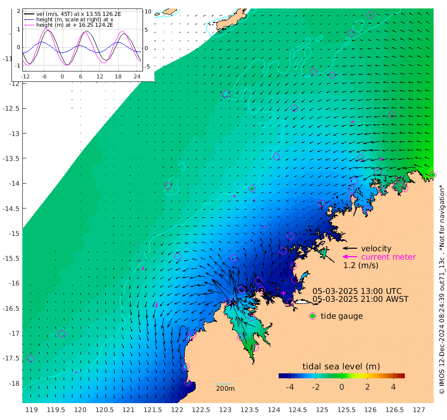 23cm/s 152T +10cm/s rms + 1cm/s 1T. NWSBRW 205m 20cm/s 168T +11cm/s rms + 6cm/s -110T. NWSROW 199m 17cm/s -164T +5cm/s rms + 2cm/s 65T. CAM050 58m 21cm/s -162T +12cm/s rms + 5cm/s 92T. CAM100 99m 7cm/s -154T +7cm/s rms + 1cm/s -85T. KIM400 396m 12cm/s -156T +9cm/s rms + 5cm/s -119T. KIM200 208m 23cm/s -165T +11cm/s rms + 5cm/s -147T. KIM100 99m 42cm/s -168T +8cm/s rms + 3cm/s -103T. KIM050 59m 25cm/s -119T +4cm/s rms + 2cm/s 23T. TIMORS88 91m -152cm Imperieuse Reef -138cm Mermaid Reef -337cm Broome -239cm Cape Baskerville -286cm Red Bluff -235cm Cape Boileau -126cm Scott Reef (WA) -151cm Ashmore Reef -335cm Karrakatta Bay -323cm Sunday Island -174cm Valentine Island -88cm Derby -214cm Port Usborne -374cm Bedford Islands -434cm Yampi Sound (Koolan Island) -433cm Macleay Island -285cm Adele Island -107cm Browse Island -522cm Shale Island -515cm Lizard Island -325cm Hall Point -365cm Degerando Island -337cm White Island -158cm Skua No. 4 Well -124cm Jabiru -268cm Maret Island -241cm Baudin Island -248cm Cape Voltaire (Krait Bay) -121cm Dillon Shoal -100cm Laminaria -269cm Port Warrender -157cm Troughton Island -221cm Cassini Island -160cm West Holothuria Reef Offshore -157cm Jar Island -208cm Lynher Bank -224cm Heywood Shoal -134cm Pee Shoal -89cm Van Cloon Shoal -83cm Carronade Island -89cm Guy Point -82cm Napier Broome Bay 26cm Lesueur Island