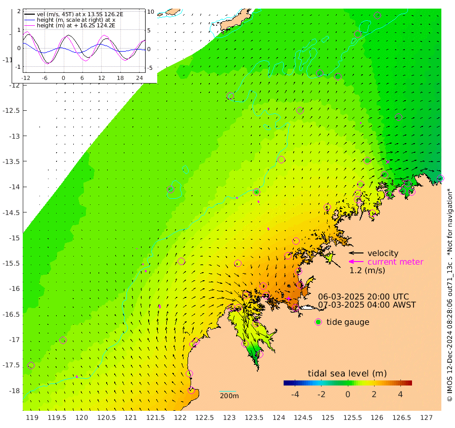 16cm/s -38T +10cm/s rms + 1cm/s 1T. NWSBRW 205m 19cm/s -21T +11cm/s rms + 6cm/s -110T. NWSROW 199m 20cm/s -32T +5cm/s rms + 2cm/s 65T. CAM050 58m 18cm/s -20T +12cm/s rms + 5cm/s 92T. CAM100 99m 4cm/s 14T +7cm/s rms + 1cm/s -85T. KIM400 396m 8cm/s -5T +9cm/s rms + 5cm/s -119T. KIM200 208m 17cm/s -14T +11cm/s rms + 5cm/s -147T. KIM100 99m 27cm/s -7T +8cm/s rms + 3cm/s -103T. KIM050 59m 9cm/s 39T +4cm/s rms + 2cm/s 23T. TIMORS88 91m 71cm Imperieuse Reef 49cm Mermaid Reef 176cm Broome 109cm Cape Baskerville 153cm Red Bluff 107cm Cape Boileau 40cm Scott Reef (WA) 48cm Ashmore Reef 203cm Karrakatta Bay 196cm Sunday Island 126cm Valentine Island 73cm Derby 152cm Port Usborne 220cm Bedford Islands 258cm Yampi Sound (Koolan Island) 257cm Macleay Island 145cm Adele Island 33cm Browse Island 328cm Shale Island 339cm Lizard Island 178cm Hall Point 197cm Degerando Island 183cm White Island 48cm Skua No. 4 Well 15cm Jabiru 120cm Maret Island 105cm Baudin Island 100cm Cape Voltaire (Krait Bay) 17cm Dillon Shoal 11cm Laminaria 109cm Port Warrender 24cm Troughton Island 73cm Cassini Island 39cm West Holothuria Reef Offshore 37cm Jar Island 97cm Lynher Bank 80cm Heywood Shoal 25cm Pee Shoal -9cm Van Cloon Shoal -22cm Carronade Island -23cm Guy Point -26cm Napier Broome Bay -109cm Lesueur Island