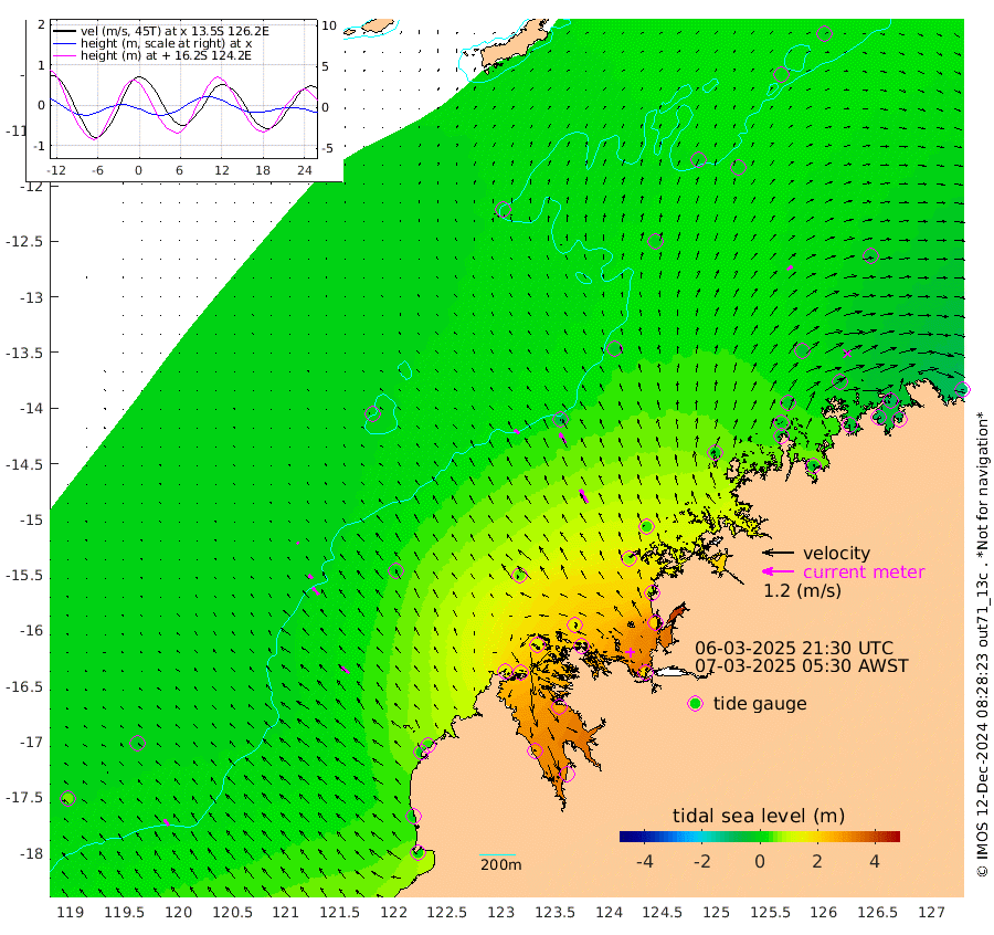 23cm/s -48T +10cm/s rms + 1cm/s 1T. NWSBRW 205m 29cm/s -37T +11cm/s rms + 6cm/s -110T. NWSROW 199m 58cm/s -31T +5cm/s rms + 2cm/s 65T. CAM050 58m 44cm/s -31T +12cm/s rms + 5cm/s 92T. CAM100 99m 7cm/s -39T +7cm/s rms + 1cm/s -85T. KIM400 396m 18cm/s -47T +9cm/s rms + 5cm/s -119T. KIM200 208m 35cm/s -42T +11cm/s rms + 5cm/s -147T. KIM100 99m 39cm/s -53T +8cm/s rms + 3cm/s -103T. KIM050 59m 22cm/s 56T +4cm/s rms + 2cm/s 23T. TIMORS88 91m 57cm Imperieuse Reef -16cm Mermaid Reef 11cm Broome -8cm Cape Baskerville 36cm Red Bluff -10cm Cape Boileau -14cm Scott Reef (WA) -1cm Ashmore Reef 149cm Karrakatta Bay 165cm Sunday Island 276cm Valentine Island 288cm Derby 267cm Port Usborne 126cm Bedford Islands 129cm Yampi Sound (Koolan Island) 143cm Macleay Island 49cm Adele Island -66cm Browse Island 204cm Shale Island 206cm Lizard Island 76cm Hall Point 62cm Degerando Island 37cm White Island -3cm Skua No. 4 Well 4cm Jabiru -2cm Maret Island -11cm Baudin Island -18cm Cape Voltaire (Krait Bay) 3cm Dillon Shoal -13cm Laminaria -20cm Port Warrender -37cm Troughton Island -28cm Cassini Island -33cm West Holothuria Reef Offshore -36cm Jar Island 11cm Lynher Bank -16cm Heywood Shoal -5cm Pee Shoal -37cm Van Cloon Shoal -77cm Carronade Island -78cm Guy Point -83cm Napier Broome Bay -118cm Lesueur Island