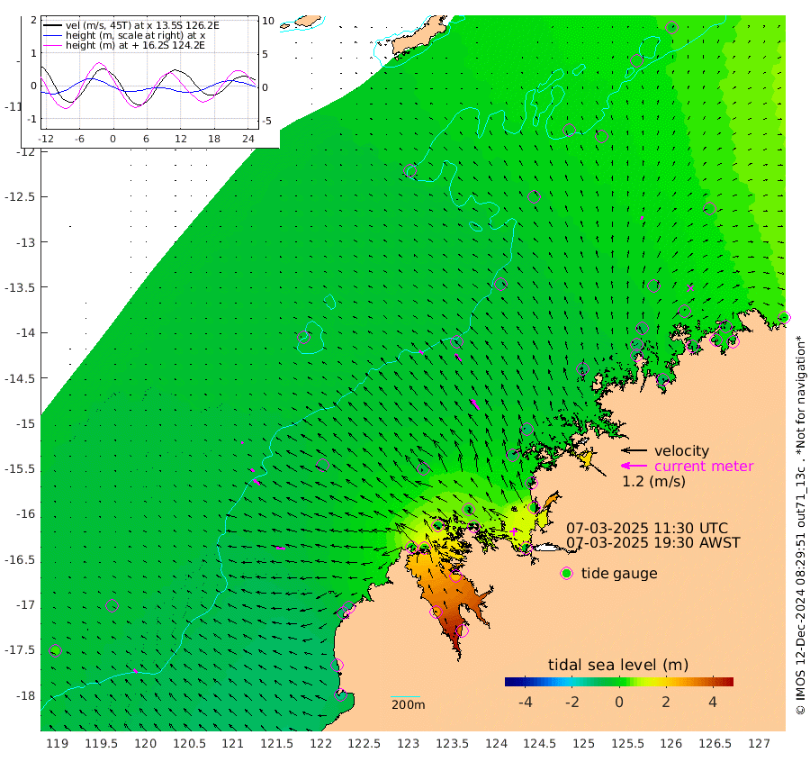 22cm/s -55T +10cm/s rms + 1cm/s 1T. NWSBRW 205m 23cm/s -47T +11cm/s rms + 6cm/s -110T. NWSROW 199m 58cm/s -36T +5cm/s rms + 2cm/s 65T. CAM050 58m 42cm/s -40T +12cm/s rms + 5cm/s 92T. CAM100 99m 9cm/s -66T +7cm/s rms + 1cm/s -85T. KIM400 396m 19cm/s -63T +9cm/s rms + 5cm/s -119T. KIM200 208m 36cm/s -52T +11cm/s rms + 5cm/s -147T. KIM100 99m 41cm/s -80T +8cm/s rms + 3cm/s -103T. KIM050 59m 14cm/s 9T +4cm/s rms + 2cm/s 23T. TIMORS88 91m 31cm Imperieuse Reef -58cm Mermaid Reef -133cm Broome -98cm Cape Baskerville -105cm Red Bluff -90cm Cape Boileau -43cm Scott Reef (WA) -26cm Ashmore Reef 17cm Karrakatta Bay 37cm Sunday Island 283cm Valentine Island 340cm Derby 237cm Port Usborne -32cm Bedford Islands -53cm Yampi Sound (Koolan Island) -21cm Macleay Island -51cm Adele Island -85cm Browse Island -21cm Shale Island -11cm Lizard Island -48cm Hall Point -78cm Degerando Island -100cm White Island -25cm Skua No. 4 Well 18cm Jabiru -83cm Maret Island -87cm Baudin Island -79cm Cape Voltaire (Krait Bay) 9cm Dillon Shoal -29cm Laminaria -77cm Port Warrender -9cm Troughton Island -64cm Cassini Island -45cm West Holothuria Reef Offshore -31cm Jar Island -62cm Lynher Bank -82cm Heywood Shoal -1cm Pee Shoal 3cm Van Cloon Shoal -23cm Carronade Island -25cm Guy Point -20cm Napier Broome Bay 27cm Lesueur Island