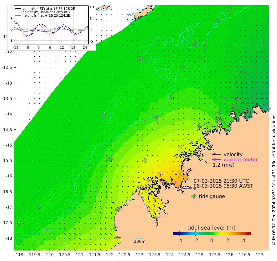 12cm/s -42T +10cm/s rms + 1cm/s 1T. NWSBRW 205m 15cm/s -31T +11cm/s rms + 6cm/s -110T. NWSROW 199m 26cm/s -31T +5cm/s rms + 2cm/s 65T. CAM050 58m 20cm/s -27T +12cm/s rms + 5cm/s 92T. CAM100 99m 3cm/s -1T +7cm/s rms + 1cm/s -85T. KIM400 396m 7cm/s -30T +9cm/s rms + 5cm/s -119T. KIM200 208m 15cm/s -32T +11cm/s rms + 5cm/s -147T. KIM100 99m 19cm/s -37T +8cm/s rms + 3cm/s -103T. KIM050 59m 9cm/s 56T +4cm/s rms + 2cm/s 23T. TIMORS88 91m 32cm Imperieuse Reef 4cm Mermaid Reef 50cm Broome 21cm Cape Baskerville 43cm Red Bluff 14cm Cape Boileau 3cm Scott Reef (WA) 3cm Ashmore Reef 110cm Karrakatta Bay 116cm Sunday Island 145cm Valentine Island 131cm Derby 150cm Port Usborne 110cm Bedford Islands 120cm Yampi Sound (Koolan Island) 137cm Macleay Island 57cm Adele Island -17cm Browse Island 171cm Shale Island 185cm Lizard Island 88cm Hall Point 70cm Degerando Island 62cm White Island 3cm Skua No. 4 Well 0cm Jabiru 24cm Maret Island 14cm Baudin Island 5cm Cape Voltaire (Krait Bay) -11cm Dillon Shoal -6cm Laminaria 2cm Port Warrender -31cm Troughton Island -10cm Cassini Island -19cm West Holothuria Reef Offshore -27cm Jar Island 29cm Lynher Bank 2cm Heywood Shoal -9cm Pee Shoal -41cm Van Cloon Shoal -64cm Carronade Island -64cm Guy Point -72cm Napier Broome Bay -115cm Lesueur Island