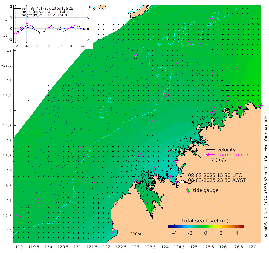 7cm/s 177T +10cm/s rms + 1cm/s 1T. NWSBRW 205m 5cm/s -162T +11cm/s rms + 6cm/s -110T. NWSROW 199m 8cm/s -125T +5cm/s rms + 2cm/s 65T. CAM050 58m 9cm/s -126T +12cm/s rms + 5cm/s 92T. CAM100 99m 4cm/s -107T +7cm/s rms + 1cm/s -85T. KIM400 396m 5cm/s -104T +9cm/s rms + 5cm/s -119T. KIM200 208m 7cm/s -118T +11cm/s rms + 5cm/s -147T. KIM100 99m 13cm/s -147T +8cm/s rms + 3cm/s -103T. KIM050 59m 14cm/s -100T +4cm/s rms + 2cm/s 23T. TIMORS88 91m -51cm Imperieuse Reef -61cm Mermaid Reef -106cm Broome -75cm Cape Baskerville -76cm Red Bluff -70cm Cape Boileau -57cm Scott Reef (WA) -58cm Ashmore Reef -109cm Karrakatta Bay -122cm Sunday Island -76cm Valentine Island -59cm Derby -93cm Port Usborne -121cm Bedford Islands -141cm Yampi Sound (Koolan Island) -151cm Macleay Island -98cm Adele Island -35cm Browse Island -167cm Shale Island -187cm Lizard Island -140cm Hall Point -108cm Degerando Island -114cm White Island -62cm Skua No. 4 Well -80cm Jabiru -83cm Maret Island -78cm Baudin Island -74cm Cape Voltaire (Krait Bay) -50cm Dillon Shoal -69cm Laminaria -73cm Port Warrender -47cm Troughton Island -60cm Cassini Island -56cm West Holothuria Reef Offshore -46cm Jar Island -83cm Lynher Bank -78cm Heywood Shoal -53cm Pee Shoal -32cm Van Cloon Shoal -24cm Carronade Island -32cm Guy Point -23cm Napier Broome Bay 6cm Lesueur Island
