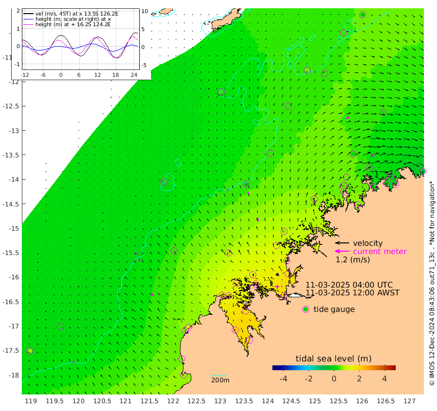 14cm/s -49T +10cm/s rms + 1cm/s 1T. NWSBRW 205m 20cm/s -34T +11cm/s rms + 6cm/s -110T. NWSROW 199m 30cm/s -20T +5cm/s rms + 2cm/s 65T. CAM050 58m 23cm/s -20T +12cm/s rms + 5cm/s 92T. CAM100 99m 5cm/s -36T +7cm/s rms + 1cm/s -85T. KIM400 396m 13cm/s -38T +9cm/s rms + 5cm/s -119T. KIM200 208m 23cm/s -31T +11cm/s rms + 5cm/s -147T. KIM100 99m 23cm/s -33T +8cm/s rms + 3cm/s -103T. KIM050 59m 27cm/s 69T +4cm/s rms + 2cm/s 23T. TIMORS88 91m 64cm Imperieuse Reef 17cm Mermaid Reef 72cm Broome 58cm Cape Baskerville 112cm Red Bluff 52cm Cape Boileau 18cm Scott Reef (WA) 40cm Ashmore Reef 139cm Karrakatta Bay 139cm Sunday Island 168cm Valentine Island 144cm Derby 151cm Port Usborne 150cm Bedford Islands 137cm Yampi Sound (Koolan Island) 134cm Macleay Island 86cm Adele Island -15cm Browse Island 178cm Shale Island 153cm Lizard Island 82cm Hall Point 113cm Degerando Island 69cm White Island 40cm Skua No. 4 Well 32cm Jabiru 64cm Maret Island 49cm Baudin Island 51cm Cape Voltaire (Krait Bay) 35cm Dillon Shoal 14cm Laminaria 62cm Port Warrender 35cm Troughton Island 58cm Cassini Island 29cm West Holothuria Reef Offshore 24cm Jar Island 43cm Lynher Bank 44cm Heywood Shoal 47cm Pee Shoal 24cm Van Cloon Shoal -5cm Carronade Island -10cm Guy Point -3cm Napier Broome Bay -35cm Lesueur Island