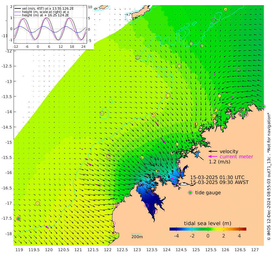 34cm/s 124T +10cm/s rms + 1cm/s 1T. NWSBRW 205m 46cm/s 137T +11cm/s rms + 6cm/s -110T. NWSROW 199m 107cm/s 142T +5cm/s rms + 2cm/s 65T. CAM050 58m 77cm/s 140T +12cm/s rms + 5cm/s 92T. CAM100 99m 16cm/s 117T +7cm/s rms + 1cm/s -85T. KIM400 396m 36cm/s 120T +9cm/s rms + 5cm/s -119T. KIM200 208m 65cm/s 126T +11cm/s rms + 5cm/s -147T. KIM100 99m 72cm/s 108T +8cm/s rms + 3cm/s -103T. KIM050 59m 24cm/s -146T +4cm/s rms + 2cm/s 23T. TIMORS88 91m -52cm Imperieuse Reef 98cm Mermaid Reef 168cm Broome 133cm Cape Baskerville 71cm Red Bluff 117cm Cape Boileau 90cm Scott Reef (WA) 64cm Ashmore Reef -70cm Karrakatta Bay -109cm Sunday Island -397cm Valentine Island -461cm Derby -336cm Port Usborne -12cm Bedford Islands 12cm Yampi Sound (Koolan Island) 65cm Macleay Island 89cm Adele Island 183cm Browse Island -58cm Shale Island -73cm Lizard Island 117cm Hall Point 69cm Degerando Island 110cm White Island 80cm Skua No. 4 Well 51cm Jabiru 132cm Maret Island 122cm Baudin Island 119cm Cape Voltaire (Krait Bay) 26cm Dillon Shoal 78cm Laminaria 97cm Port Warrender 66cm Troughton Island 121cm Cassini Island 96cm West Holothuria Reef Offshore 59cm Jar Island 84cm Lynher Bank 118cm Heywood Shoal 49cm Pee Shoal 26cm Van Cloon Shoal 66cm Carronade Island 72cm Guy Point 62cm Napier Broome Bay 13cm Lesueur Island
