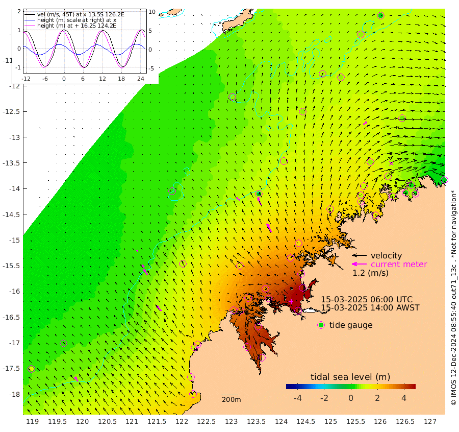 36cm/s -49T +10cm/s rms + 1cm/s 1T. NWSBRW 205m 45cm/s -34T +11cm/s rms + 6cm/s -110T. NWSROW 199m 80cm/s -29T +5cm/s rms + 2cm/s 65T. CAM050 58m 62cm/s -27T +12cm/s rms + 5cm/s 92T. CAM100 99m 13cm/s -38T +7cm/s rms + 1cm/s -85T. KIM400 396m 27cm/s -40T +9cm/s rms + 5cm/s -119T. KIM200 208m 54cm/s -33T +11cm/s rms + 5cm/s -147T. KIM100 99m 60cm/s -41T +8cm/s rms + 3cm/s -103T. KIM050 59m 35cm/s 47T +4cm/s rms + 2cm/s 23T. TIMORS88 91m 146cm Imperieuse Reef 36cm Mermaid Reef 153cm Broome 98cm Cape Baskerville 176cm Red Bluff 102cm Cape Boileau 35cm Scott Reef (WA) 74cm Ashmore Reef 292cm Karrakatta Bay 313cm Sunday Island 400cm Valentine Island 373cm Derby 385cm Port Usborne 298cm Bedford Islands 327cm Yampi Sound (Koolan Island) 311cm Macleay Island 175cm Adele Island -23cm Browse Island 432cm Shale Island 437cm Lizard Island 233cm Hall Point 245cm Degerando Island 192cm White Island 67cm Skua No. 4 Well 72cm Jabiru 130cm Maret Island 105cm Baudin Island 120cm Cape Voltaire (Krait Bay) 71cm Dillon Shoal 12cm Laminaria 161cm Port Warrender 89cm Troughton Island 103cm Cassini Island 69cm West Holothuria Reef Offshore 84cm Jar Island 104cm Lynher Bank 84cm Heywood Shoal 76cm Pee Shoal 56cm Van Cloon Shoal 28cm Carronade Island 21cm Guy Point 28cm Napier Broome Bay -24cm Lesueur Island