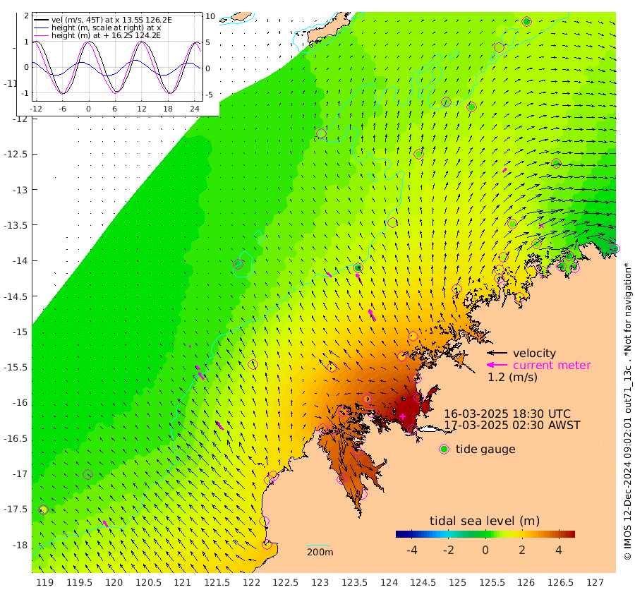 35cm/s -48T +10cm/s rms + 1cm/s 1T. NWSBRW 205m 45cm/s -34T +11cm/s rms + 6cm/s -110T. NWSROW 199m 78cm/s -30T +5cm/s rms + 2cm/s 65T. CAM050 58m 61cm/s -29T +12cm/s rms + 5cm/s 92T. CAM100 99m 12cm/s -37T +7cm/s rms + 1cm/s -85T. KIM400 396m 28cm/s -40T +9cm/s rms + 5cm/s -119T. KIM200 208m 52cm/s -36T +11cm/s rms + 5cm/s -147T. KIM100 99m 60cm/s -39T +8cm/s rms + 3cm/s -103T. KIM050 59m 30cm/s 43T +4cm/s rms + 2cm/s 23T. TIMORS88 91m 134cm Imperieuse Reef 31cm Mermaid Reef 154cm Broome 104cm Cape Baskerville 201cm Red Bluff 108cm Cape Boileau 26cm Scott Reef (WA) 62cm Ashmore Reef 308cm Karrakatta Bay 318cm Sunday Island 396cm Valentine Island 349cm Derby 365cm Port Usborne 295cm Bedford Islands 330cm Yampi Sound (Koolan Island) 315cm Macleay Island 170cm Adele Island -33cm Browse Island 441cm Shale Island 423cm Lizard Island 248cm Hall Point 237cm Degerando Island 196cm White Island 52cm Skua No. 4 Well 36cm Jabiru 119cm Maret Island 112cm Baudin Island 103cm Cape Voltaire (Krait Bay) 61cm Dillon Shoal 0cm Laminaria 149cm Port Warrender 60cm Troughton Island 84cm Cassini Island 55cm West Holothuria Reef Offshore 66cm Jar Island 93cm Lynher Bank 82cm Heywood Shoal 53cm Pee Shoal 32cm Van Cloon Shoal 0cm Carronade Island 0cm Guy Point -4cm Napier Broome Bay -70cm Lesueur Island