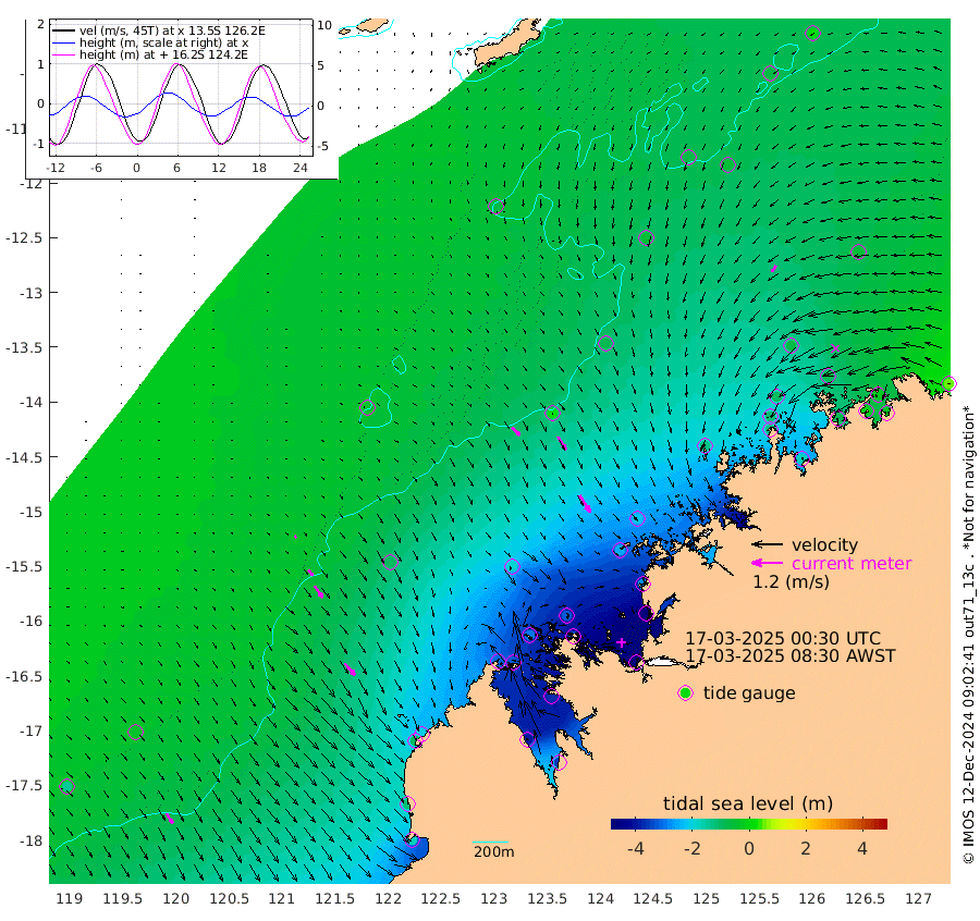 44cm/s 133T +10cm/s rms + 1cm/s 1T. NWSBRW 205m 46cm/s 148T +11cm/s rms + 6cm/s -110T. NWSROW 199m 78cm/s 148T +5cm/s rms + 2cm/s 65T. CAM050 58m 62cm/s 149T +12cm/s rms + 5cm/s 92T. CAM100 99m 12cm/s 145T +7cm/s rms + 1cm/s -85T. KIM400 396m 27cm/s 138T +9cm/s rms + 5cm/s -119T. KIM200 208m 55cm/s 146T +11cm/s rms + 5cm/s -147T. KIM100 99m 61cm/s 138T +8cm/s rms + 3cm/s -103T. KIM050 59m 28cm/s -147T +4cm/s rms + 2cm/s 23T. TIMORS88 91m -141cm Imperieuse Reef -35cm Mermaid Reef -167cm Broome -104cm Cape Baskerville -200cm Red Bluff -116cm Cape Boileau -31cm Scott Reef (WA) -68cm Ashmore Reef -305cm Karrakatta Bay -317cm Sunday Island -390cm Valentine Island -346cm Derby -369cm Port Usborne -296cm Bedford Islands -344cm Yampi Sound (Koolan Island) -330cm Macleay Island -181cm Adele Island 16cm Browse Island -454cm Shale Island -475cm Lizard Island -278cm Hall Point -252cm Degerando Island -212cm White Island -59cm Skua No. 4 Well -53cm Jabiru -134cm Maret Island -113cm Baudin Island -122cm Cape Voltaire (Krait Bay) -61cm Dillon Shoal 1cm Laminaria -170cm Port Warrender -76cm Troughton Island -98cm Cassini Island -67cm West Holothuria Reef Offshore -82cm Jar Island -104cm Lynher Bank -86cm Heywood Shoal -62cm Pee Shoal -45cm Van Cloon Shoal -20cm Carronade Island -13cm Guy Point -24cm Napier Broome Bay 53cm Lesueur Island