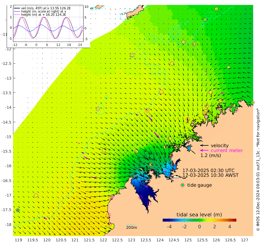 33cm/s 121T +10cm/s rms + 1cm/s 1T. NWSBRW 205m 44cm/s 135T +11cm/s rms + 6cm/s -110T. NWSROW 199m 108cm/s 141T +5cm/s rms + 2cm/s 65T. CAM050 58m 78cm/s 138T +12cm/s rms + 5cm/s 92T. CAM100 99m 16cm/s 113T +7cm/s rms + 1cm/s -85T. KIM400 396m 35cm/s 117T +9cm/s rms + 5cm/s -119T. KIM200 208m 64cm/s 123T +11cm/s rms + 5cm/s -147T. KIM100 99m 74cm/s 102T +8cm/s rms + 3cm/s -103T. KIM050 59m 21cm/s -151T +4cm/s rms + 2cm/s 23T. TIMORS88 91m -21cm Imperieuse Reef 124cm Mermaid Reef 229cm Broome 183cm Cape Baskerville 134cm Red Bluff 168cm Cape Boileau 112cm Scott Reef (WA) 98cm Ashmore Reef -11cm Karrakatta Bay -61cm Sunday Island -391cm Valentine Island -472cm Derby -324cm Port Usborne 50cm Bedford Islands 79cm Yampi Sound (Koolan Island) 117cm Macleay Island 134cm Adele Island 204cm Browse Island 19cm Shale Island -15cm Lizard Island 143cm Hall Point 135cm Degerando Island 164cm White Island 114cm Skua No. 4 Well 74cm Jabiru 185cm Maret Island 179cm Baudin Island 172cm Cape Voltaire (Krait Bay) 56cm Dillon Shoal 98cm Laminaria 154cm Port Warrender 113cm Troughton Island 177cm Cassini Island 137cm West Holothuria Reef Offshore 107cm Jar Island 119cm Lynher Bank 165cm Heywood Shoal 82cm Pee Shoal 62cm Van Cloon Shoal 103cm Carronade Island 109cm Guy Point 103cm Napier Broome Bay 48cm Lesueur Island