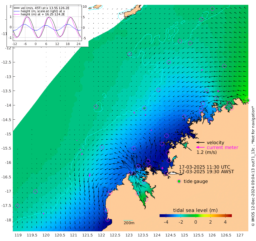 25cm/s 151T +10cm/s rms + 1cm/s 1T. NWSBRW 205m 20cm/s 166T +11cm/s rms + 6cm/s -110T. NWSROW 199m 17cm/s -166T +5cm/s rms + 2cm/s 65T. CAM050 58m 21cm/s -165T +12cm/s rms + 5cm/s 92T. CAM100 99m 7cm/s -161T +7cm/s rms + 1cm/s -85T. KIM400 396m 12cm/s -163T +9cm/s rms + 5cm/s -119T. KIM200 208m 25cm/s -168T +11cm/s rms + 5cm/s -147T. KIM100 99m 44cm/s -170T +8cm/s rms + 3cm/s -103T. KIM050 59m 23cm/s -123T +4cm/s rms + 2cm/s 23T. TIMORS88 91m -148cm Imperieuse Reef -135cm Mermaid Reef -355cm Broome -261cm Cape Baskerville -335cm Red Bluff -251cm Cape Boileau -119cm Scott Reef (WA) -154cm Ashmore Reef -360cm Karrakatta Bay -335cm Sunday Island -185cm Valentine Island -75cm Derby -201cm Port Usborne -386cm Bedford Islands -456cm Yampi Sound (Koolan Island) -463cm Macleay Island -305cm Adele Island -115cm Browse Island -544cm Shale Island -497cm Lizard Island -425cm Hall Point -384cm Degerando Island -361cm White Island -153cm Skua No. 4 Well -116cm Jabiru -284cm Maret Island -272cm Baudin Island -257cm Cape Voltaire (Krait Bay) -123cm Dillon Shoal -83cm Laminaria -297cm Port Warrender -167cm Troughton Island -239cm Cassini Island -177cm West Holothuria Reef Offshore -169cm Jar Island -204cm Lynher Bank -224cm Heywood Shoal -131cm Pee Shoal -94cm Van Cloon Shoal -89cm Carronade Island -92cm Guy Point -83cm Napier Broome Bay 28cm Lesueur Island
