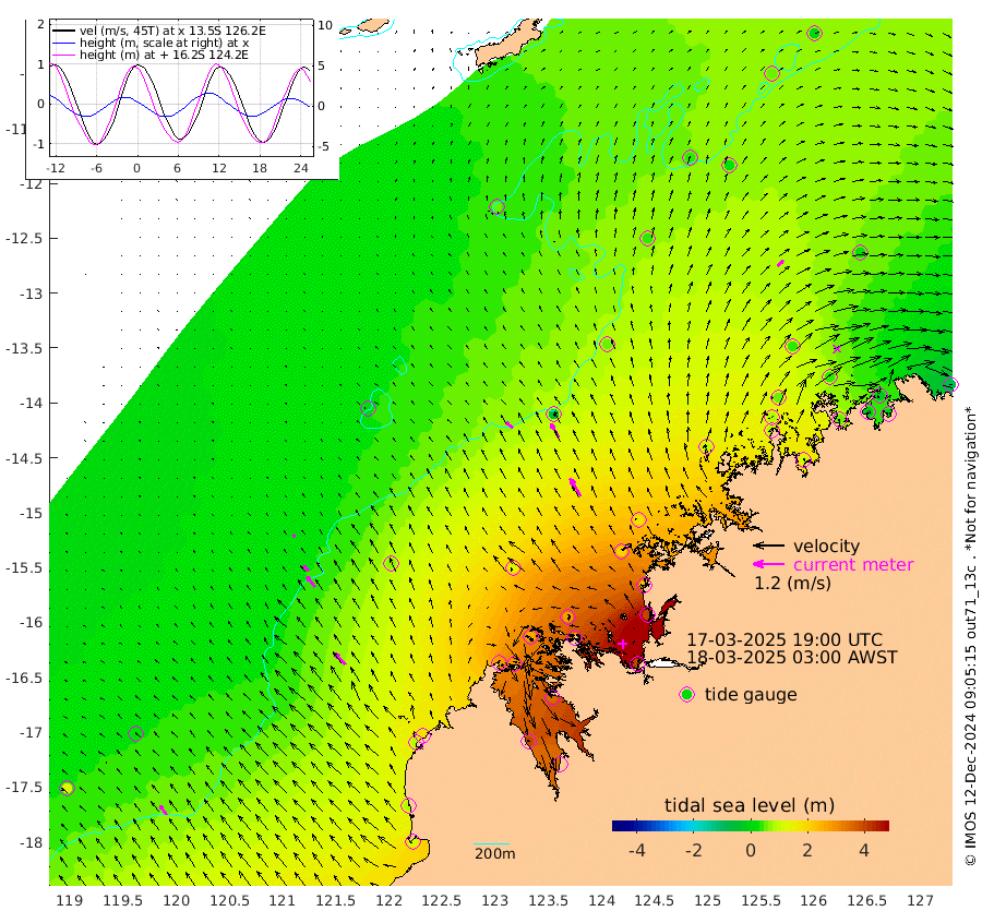 34cm/s -48T +10cm/s rms + 1cm/s 1T. NWSBRW 205m 44cm/s -35T +11cm/s rms + 6cm/s -110T. NWSROW 199m 80cm/s -31T +5cm/s rms + 2cm/s 65T. CAM050 58m 61cm/s -30T +12cm/s rms + 5cm/s 92T. CAM100 99m 12cm/s -38T +7cm/s rms + 1cm/s -85T. KIM400 396m 27cm/s -42T +9cm/s rms + 5cm/s -119T. KIM200 208m 51cm/s -38T +11cm/s rms + 5cm/s -147T. KIM100 99m 59cm/s -42T +8cm/s rms + 3cm/s -103T. KIM050 59m 29cm/s 45T +4cm/s rms + 2cm/s 23T. TIMORS88 91m 120cm Imperieuse Reef 18cm Mermaid Reef 120cm Broome 77cm Cape Baskerville 173cm Red Bluff 78cm Cape Boileau 13cm Scott Reef (WA) 46cm Ashmore Reef 280cm Karrakatta Bay 291cm Sunday Island 394cm Valentine Island 355cm Derby 358cm Port Usborne 258cm Bedford Islands 294cm Yampi Sound (Koolan Island) 278cm Macleay Island 143cm Adele Island -49cm Browse Island 403cm Shale Island 395cm Lizard Island 239cm Hall Point 200cm Degerando Island 167cm White Island 35cm Skua No. 4 Well 27cm Jabiru 91cm Maret Island 84cm Baudin Island 75cm Cape Voltaire (Krait Bay) 47cm Dillon Shoal -7cm Laminaria 117cm Port Warrender 38cm Troughton Island 56cm Cassini Island 36cm West Holothuria Reef Offshore 46cm Jar Island 73cm Lynher Bank 58cm Heywood Shoal 38cm Pee Shoal 17cm Van Cloon Shoal -16cm Carronade Island -17cm Guy Point -21cm Napier Broome Bay -81cm Lesueur Island