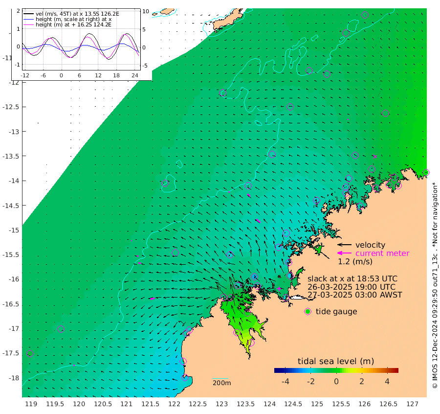 11cm/s -75T +10cm/s rms + 1cm/s 1T. NWSBRW 205m 11cm/s -70T +11cm/s rms + 6cm/s -110T. NWSROW 199m 43cm/s -49T +5cm/s rms + 2cm/s 65T. CAM050 58m 31cm/s -56T +12cm/s rms + 5cm/s 92T. CAM100 99m 8cm/s -90T +7cm/s rms + 1cm/s -85T. KIM400 396m 14cm/s -80T +9cm/s rms + 5cm/s -119T. KIM200 208m 24cm/s -78T +11cm/s rms + 5cm/s -147T. KIM100 99m 37cm/s -101T +8cm/s rms + 3cm/s -103T. KIM050 59m 10cm/s -92T +4cm/s rms + 2cm/s 23T. TIMORS88 91m -57cm Imperieuse Reef -110cm Mermaid Reef -217cm Broome -164cm Cape Baskerville -165cm Red Bluff -165cm Cape Boileau -109cm Scott Reef (WA) -115cm Ashmore Reef -132cm Karrakatta Bay -109cm Sunday Island 49cm Valentine Island 107cm Derby 14cm Port Usborne -161cm Bedford Islands -189cm Yampi Sound (Koolan Island) -253cm Macleay Island -188cm Adele Island -138cm Browse Island -195cm Shale Island -202cm Lizard Island -223cm Hall Point -189cm Degerando Island -183cm White Island -133cm Skua No. 4 Well -118cm Jabiru -187cm Maret Island -156cm Baudin Island -165cm Cape Voltaire (Krait Bay) -92cm Dillon Shoal -101cm Laminaria -156cm Port Warrender -116cm Troughton Island -169cm Cassini Island -129cm West Holothuria Reef Offshore -98cm Jar Island -130cm Lynher Bank -159cm Heywood Shoal -117cm Pee Shoal -76cm Van Cloon Shoal -73cm Carronade Island -75cm Guy Point -86cm Napier Broome Bay 4cm Lesueur Island