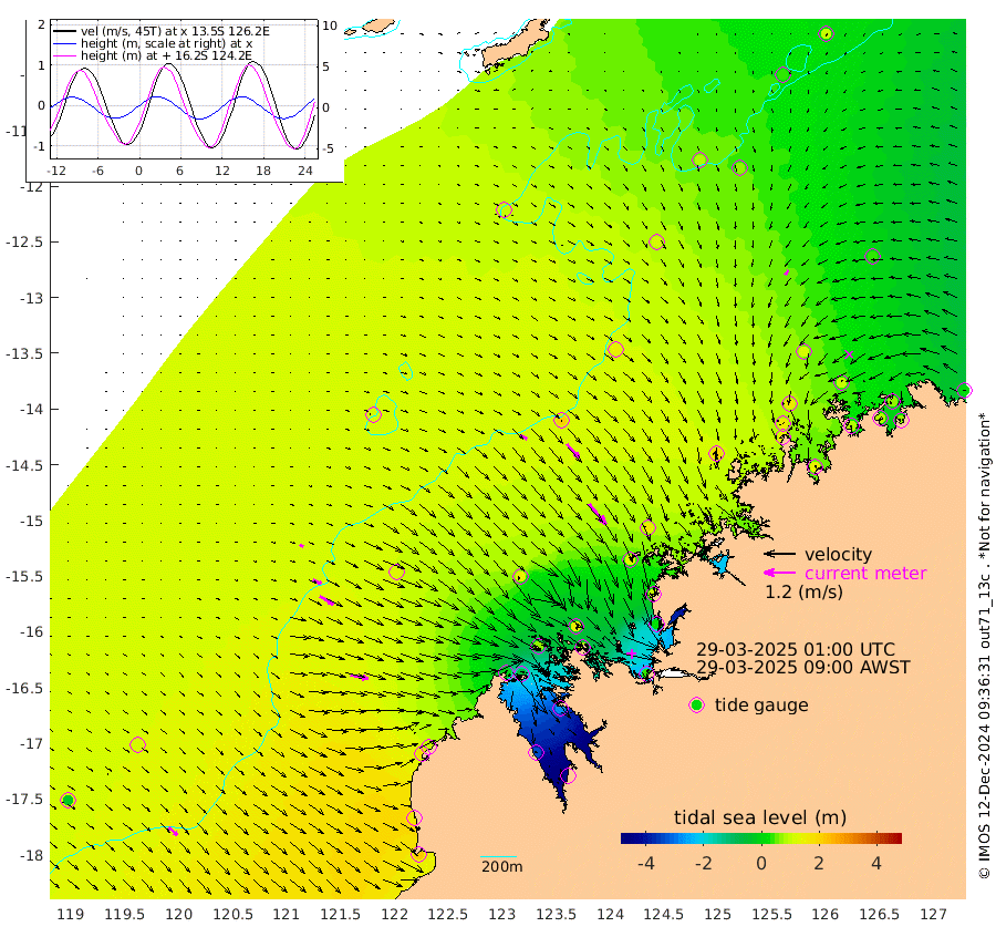 30cm/s 122T +10cm/s rms + 1cm/s 1T. NWSBRW 205m 41cm/s 134T +11cm/s rms + 6cm/s -110T. NWSROW 199m 102cm/s 141T +5cm/s rms + 2cm/s 65T. CAM050 58m 72cm/s 138T +12cm/s rms + 5cm/s 92T. CAM100 99m 16cm/s 112T +7cm/s rms + 1cm/s -85T. KIM400 396m 34cm/s 116T +9cm/s rms + 5cm/s -119T. KIM200 208m 61cm/s 121T +11cm/s rms + 5cm/s -147T. KIM100 99m 70cm/s 102T +8cm/s rms + 3cm/s -103T. KIM050 59m 21cm/s -141T +4cm/s rms + 2cm/s 23T. TIMORS88 91m -18cm Imperieuse Reef 120cm Mermaid Reef 223cm Broome 176cm Cape Baskerville 101cm Red Bluff 156cm Cape Boileau 114cm Scott Reef (WA) 91cm Ashmore Reef -4cm Karrakatta Bay -50cm Sunday Island -331cm Valentine Island -422cm Derby -272cm Port Usborne 73cm Bedford Islands 83cm Yampi Sound (Koolan Island) 149cm Macleay Island 138cm Adele Island 207cm Browse Island 31cm Shale Island 25cm Lizard Island 94cm Hall Point 132cm Degerando Island 155cm White Island 114cm Skua No. 4 Well 66cm Jabiru 181cm Maret Island 161cm Baudin Island 158cm Cape Voltaire (Krait Bay) 37cm Dillon Shoal 93cm Laminaria 135cm Port Warrender 100cm Troughton Island 160cm Cassini Island 116cm West Holothuria Reef Offshore 82cm Jar Island 123cm Lynher Bank 146cm Heywood Shoal 78cm Pee Shoal 40cm Van Cloon Shoal 72cm Carronade Island 79cm Guy Point 68cm Napier Broome Bay 13cm Lesueur Island