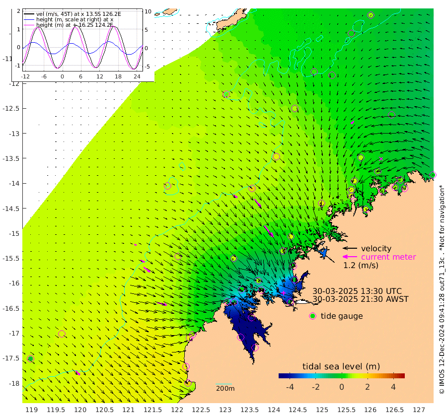 39cm/s 124T +10cm/s rms + 1cm/s 1T. NWSBRW 205m 49cm/s 136T +11cm/s rms + 6cm/s -110T. NWSROW 199m 122cm/s 142T +5cm/s rms + 2cm/s 65T. CAM050 58m 87cm/s 141T +12cm/s rms + 5cm/s 92T. CAM100 99m 19cm/s 117T +7cm/s rms + 1cm/s -85T. KIM400 396m 39cm/s 119T +9cm/s rms + 5cm/s -119T. KIM200 208m 70cm/s 126T +11cm/s rms + 5cm/s -147T. KIM100 99m 85cm/s 106T +8cm/s rms + 3cm/s -103T. KIM050 59m 33cm/s -132T +4cm/s rms + 2cm/s 23T. TIMORS88 91m -59cm Imperieuse Reef 108cm Mermaid Reef 200cm Broome 152cm Cape Baskerville 89cm Red Bluff 156cm Cape Boileau 101cm Scott Reef (WA) 60cm Ashmore Reef -77cm Karrakatta Bay -111cm Sunday Island -478cm Valentine Island -556cm Derby -397cm Port Usborne 6cm Bedford Islands 19cm Yampi Sound (Koolan Island) 66cm Macleay Island 95cm Adele Island 205cm Browse Island -63cm Shale Island -41cm Lizard Island 20cm Hall Point 90cm Degerando Island 123cm White Island 83cm Skua No. 4 Well 21cm Jabiru 146cm Maret Island 125cm Baudin Island 133cm Cape Voltaire (Krait Bay) 9cm Dillon Shoal 74cm Laminaria 107cm Port Warrender 49cm Troughton Island 123cm Cassini Island 90cm West Holothuria Reef Offshore 51cm Jar Island 103cm Lynher Bank 136cm Heywood Shoal 44cm Pee Shoal 18cm Van Cloon Shoal 58cm Carronade Island 66cm Guy Point 69cm Napier Broome Bay -16cm Lesueur Island