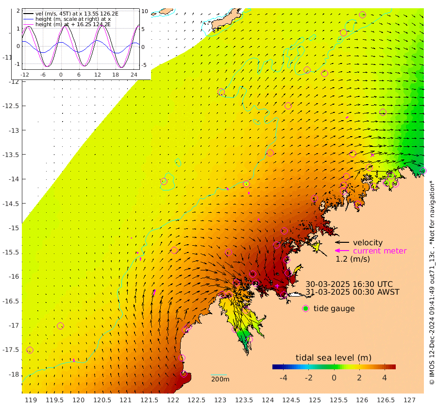 23cm/s -27T +10cm/s rms + 1cm/s 1T. NWSBRW 205m 27cm/s -12T +11cm/s rms + 6cm/s -110T. NWSROW 199m 14cm/s -1T +5cm/s rms + 2cm/s 65T. CAM050 58m 19cm/s 7T +12cm/s rms + 5cm/s 92T. CAM100 99m 9cm/s 20T +7cm/s rms + 1cm/s -85T. KIM400 396m 14cm/s 12T +9cm/s rms + 5cm/s -119T. KIM200 208m 27cm/s 6T +11cm/s rms + 5cm/s -147T. KIM100 99m 51cm/s 13T +8cm/s rms + 3cm/s -103T. KIM050 59m 22cm/s 52T +4cm/s rms + 2cm/s 23T. TIMORS88 91m 168cm Imperieuse Reef 147cm Mermaid Reef 403cm Broome 286cm Cape Baskerville 371cm Red Bluff 290cm Cape Boileau 136cm Scott Reef (WA) 170cm Ashmore Reef 402cm Karrakatta Bay 369cm Sunday Island 181cm Valentine Island 68cm Derby 223cm Port Usborne 439cm Bedford Islands 504cm Yampi Sound (Koolan Island) 530cm Macleay Island 345cm Adele Island 135cm Browse Island 606cm Shale Island 579cm Lizard Island 399cm Hall Point 433cm Degerando Island 386cm White Island 180cm Skua No. 4 Well 114cm Jabiru 321cm Maret Island 281cm Baudin Island 287cm Cape Voltaire (Krait Bay) 130cm Dillon Shoal 86cm Laminaria 311cm Port Warrender 168cm Troughton Island 266cm Cassini Island 179cm West Holothuria Reef Offshore 165cm Jar Island 225cm Lynher Bank 255cm Heywood Shoal 151cm Pee Shoal 89cm Van Cloon Shoal 73cm Carronade Island 73cm Guy Point 78cm Napier Broome Bay -87cm Lesueur Island