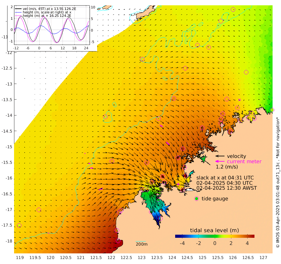 9cm/s 47T +10cm/s rms + 1cm/s 1T. NWSBRW 205m 16cm/s 89T +11cm/s rms + 6cm/s -110T. NWSROW 199m 57cm/s 134T +5cm/s rms + 2cm/s 65T. CAM050 58m 40cm/s 120T +12cm/s rms + 5cm/s 92T. CAM100 99m 11cm/s 80T +7cm/s rms + 1cm/s -85T. KIM400 396m 23cm/s 93T +9cm/s rms + 5cm/s -119T. KIM200 208m 38cm/s 91T +11cm/s rms + 5cm/s -147T. KIM100 99m 58cm/s 62T +8cm/s rms + 3cm/s -103T. KIM050 59m 1cm/s 175T +4cm/s rms + 2cm/s 23T. TIMORS88 91m 133cm Imperieuse Reef 207cm Mermaid Reef 457cm Broome 341cm Cape Baskerville 340cm Red Bluff 338cm Cape Boileau 191cm Scott Reef (WA) 206cm Ashmore Reef 284cm Karrakatta Bay 243cm Sunday Island -84cm Valentine Island -228cm Derby -23cm Port Usborne 369cm Bedford Islands 442cm Yampi Sound (Koolan Island) 459cm Macleay Island 345cm Adele Island 249cm Browse Island 469cm Shale Island 475cm Lizard Island 381cm Hall Point 426cm Degerando Island 421cm White Island 222cm Skua No. 4 Well 172cm Jabiru 378cm Maret Island 345cm Baudin Island 359cm Cape Voltaire (Krait Bay) 147cm Dillon Shoal 144cm Laminaria 386cm Port Warrender 254cm Troughton Island 335cm Cassini Island 254cm West Holothuria Reef Offshore 245cm Jar Island 274cm Lynher Bank 313cm Heywood Shoal 187cm Pee Shoal 153cm Van Cloon Shoal 189cm Carronade Island 194cm Guy Point 193cm Napier Broome Bay 77cm Lesueur Island