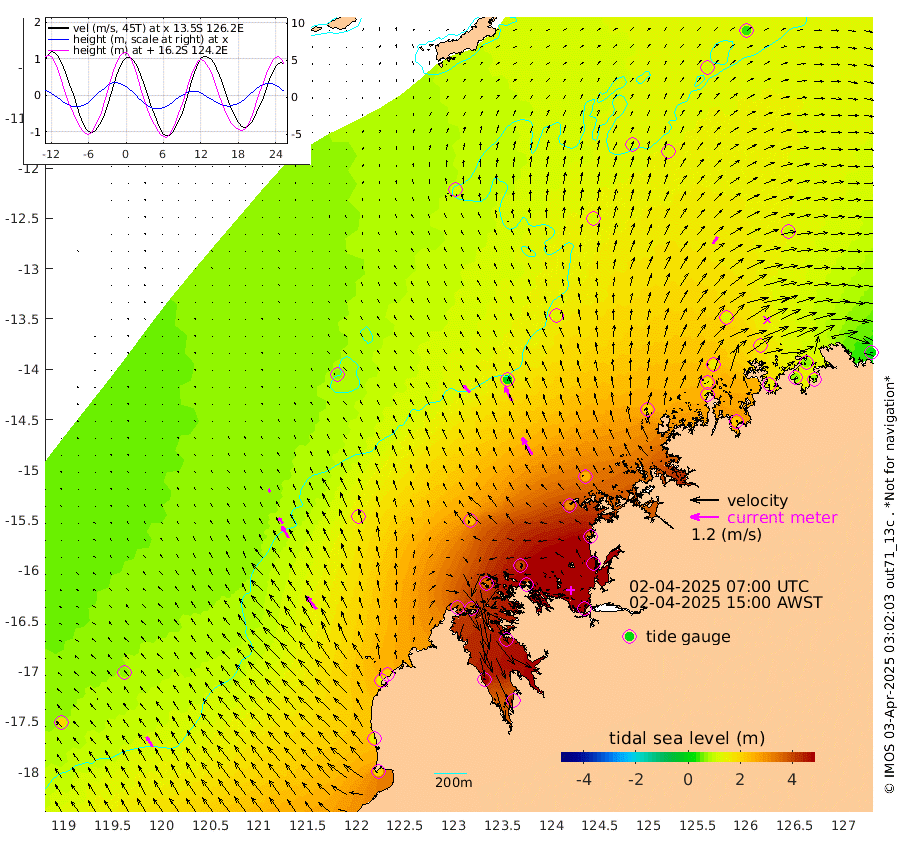 42cm/s -45T +10cm/s rms + 1cm/s 1T. NWSBRW 205m 50cm/s -32T +11cm/s rms + 6cm/s -110T. NWSROW 199m 83cm/s -31T +5cm/s rms + 2cm/s 65T. CAM050 58m 66cm/s -28T +12cm/s rms + 5cm/s 92T. CAM100 99m 14cm/s -34T +7cm/s rms + 1cm/s -85T. KIM400 396m 29cm/s -37T +9cm/s rms + 5cm/s -119T. KIM200 208m 57cm/s -31T +11cm/s rms + 5cm/s -147T. KIM100 99m 67cm/s -37T +8cm/s rms + 3cm/s -103T. KIM050 59m 35cm/s 34T +4cm/s rms + 2cm/s 23T. TIMORS88 91m 187cm Imperieuse Reef 64cm Mermaid Reef 209cm Broome 140cm Cape Baskerville 206cm Red Bluff 145cm Cape Boileau 62cm Scott Reef (WA) 114cm Ashmore Reef 367cm Karrakatta Bay 365cm Sunday Island 466cm Valentine Island 425cm Derby 450cm Port Usborne 350cm Bedford Islands 402cm Yampi Sound (Koolan Island) 399cm Macleay Island 225cm Adele Island 11cm Browse Island 532cm Shale Island 537cm Lizard Island 336cm Hall Point 303cm Degerando Island 251cm White Island 111cm Skua No. 4 Well 132cm Jabiru 185cm Maret Island 164cm Baudin Island 173cm Cape Voltaire (Krait Bay) 110cm Dillon Shoal 35cm Laminaria 213cm Port Warrender 151cm Troughton Island 158cm Cassini Island 113cm West Holothuria Reef Offshore 141cm Jar Island 138cm Lynher Bank 125cm Heywood Shoal 114cm Pee Shoal 94cm Van Cloon Shoal 70cm Carronade Island 64cm Guy Point 72cm Napier Broome Bay 20cm Lesueur Island