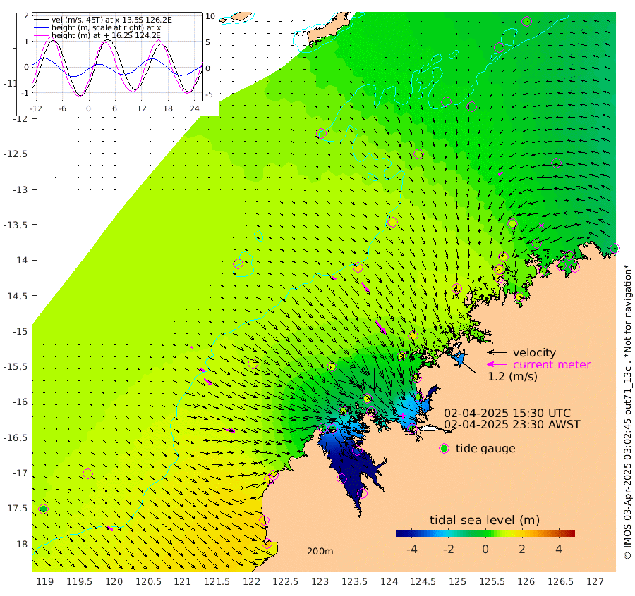 28cm/s 122T +10cm/s rms + 1cm/s 1T. NWSBRW 205m 39cm/s 133T +11cm/s rms + 6cm/s -110T. NWSROW 199m 102cm/s 144T +5cm/s rms + 2cm/s 65T. CAM050 58m 71cm/s 141T +12cm/s rms + 5cm/s 92T. CAM100 99m 15cm/s 114T +7cm/s rms + 1cm/s -85T. KIM400 396m 33cm/s 116T +9cm/s rms + 5cm/s -119T. KIM200 208m 58cm/s 123T +11cm/s rms + 5cm/s -147T. KIM100 99m 70cm/s 100T +8cm/s rms + 3cm/s -103T. KIM050 59m 33cm/s -128T +4cm/s rms + 2cm/s 23T. TIMORS88 91m -44cm Imperieuse Reef 97cm Mermaid Reef 236cm Broome 173cm Cape Baskerville 151cm Red Bluff 168cm Cape Boileau 82cm Scott Reef (WA) 52cm Ashmore Reef -15cm Karrakatta Bay -59cm Sunday Island -424cm Valentine Island -531cm Derby -355cm Port Usborne 69cm Bedford Islands 98cm Yampi Sound (Koolan Island) 112cm Macleay Island 117cm Adele Island 187cm Browse Island 44cm Shale Island 46cm Lizard Island 86cm Hall Point 145cm Degerando Island 173cm White Island 62cm Skua No. 4 Well -14cm Jabiru 165cm Maret Island 151cm Baudin Island 147cm Cape Voltaire (Krait Bay) -13cm Dillon Shoal 35cm Laminaria 142cm Port Warrender 41cm Troughton Island 130cm Cassini Island 84cm West Holothuria Reef Offshore 57cm Jar Island 108cm Lynher Bank 131cm Heywood Shoal 20cm Pee Shoal -1cm Van Cloon Shoal 41cm Carronade Island 42cm Guy Point 42cm Napier Broome Bay -52cm Lesueur Island