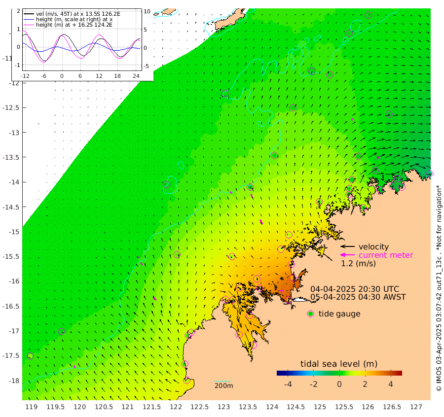 19cm/s -44T +10cm/s rms + 1cm/s 1T. NWSBRW 205m 24cm/s -32T +11cm/s rms + 6cm/s -110T. NWSROW 199m 41cm/s -30T +5cm/s rms + 2cm/s 65T. CAM050 58m 32cm/s -27T +12cm/s rms + 5cm/s 92T. CAM100 99m 5cm/s -20T +7cm/s rms + 1cm/s -85T. KIM400 396m 13cm/s -33T +9cm/s rms + 5cm/s -119T. KIM200 208m 26cm/s -33T +11cm/s rms + 5cm/s -147T. KIM100 99m 31cm/s -38T +8cm/s rms + 3cm/s -103T. KIM050 59m 20cm/s 52T +4cm/s rms + 2cm/s 23T. TIMORS88 91m 62cm Imperieuse Reef 13cm Mermaid Reef 78cm Broome 40cm Cape Baskerville 80cm Red Bluff 31cm Cape Boileau 10cm Scott Reef (WA) 22cm Ashmore Reef 170cm Karrakatta Bay 176cm Sunday Island 224cm Valentine Island 204cm Derby 226cm Port Usborne 166cm Bedford Islands 181cm Yampi Sound (Koolan Island) 191cm Macleay Island 89cm Adele Island -25cm Browse Island 257cm Shale Island 263cm Lizard Island 162cm Hall Point 116cm Degerando Island 97cm White Island 18cm Skua No. 4 Well 18cm Jabiru 50cm Maret Island 39cm Baudin Island 28cm Cape Voltaire (Krait Bay) 6cm Dillon Shoal 2cm Laminaria 32cm Port Warrender -10cm Troughton Island 12cm Cassini Island -3cm West Holothuria Reef Offshore -8cm Jar Island 49cm Lynher Bank 20cm Heywood Shoal 9cm Pee Shoal -27cm Van Cloon Shoal -56cm Carronade Island -57cm Guy Point -65cm Napier Broome Bay -113cm Lesueur Island