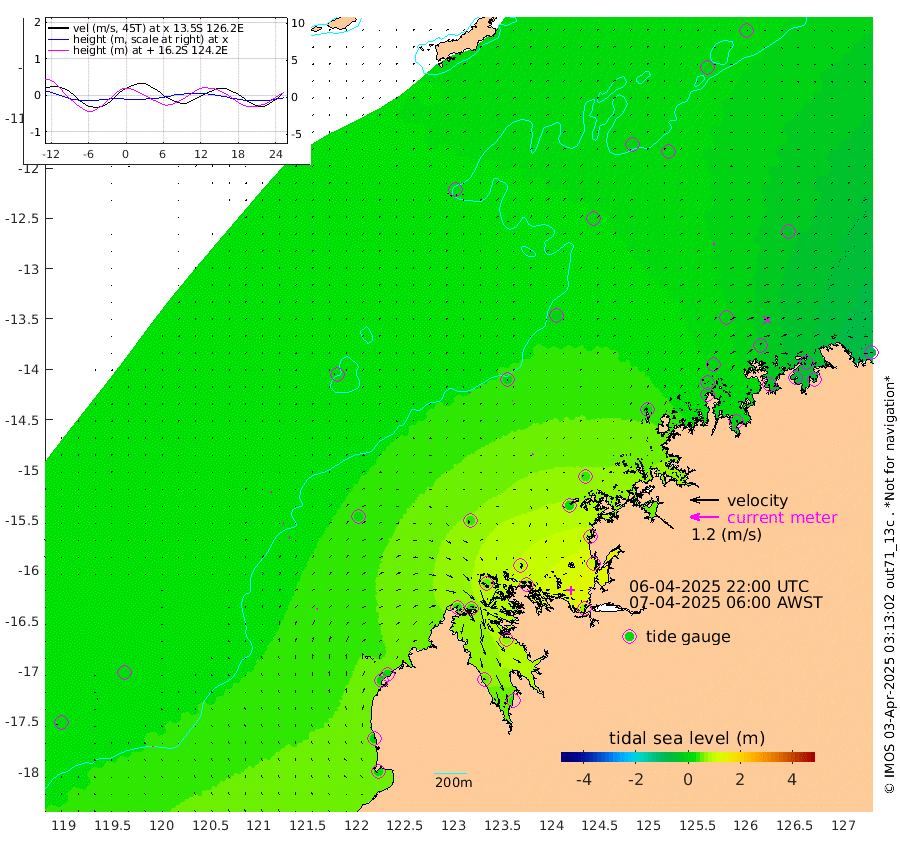 1cm/s 4T +10cm/s rms + 1cm/s 1T. NWSBRW 205m 2cm/s 5T +11cm/s rms + 6cm/s -110T. NWSROW 199m 3cm/s 39T +5cm/s rms + 2cm/s 65T. CAM050 58m 3cm/s 48T +12cm/s rms + 5cm/s 92T. CAM100 99m 3cm/s 94T +7cm/s rms + 1cm/s -85T. KIM400 396m 3cm/s 74T +9cm/s rms + 5cm/s -119T. KIM200 208m 4cm/s 68T +11cm/s rms + 5cm/s -147T. KIM100 99m 4cm/s 40T +8cm/s rms + 3cm/s -103T. KIM050 59m 6cm/s 68T +4cm/s rms + 2cm/s 23T. TIMORS88 91m 3cm Imperieuse Reef 11cm Mermaid Reef 30cm Broome 14cm Cape Baskerville 4cm Red Bluff -1cm Cape Boileau 12cm Scott Reef (WA) 4cm Ashmore Reef 38cm Karrakatta Bay 42cm Sunday Island 59cm Valentine Island 42cm Derby 62cm Port Usborne 50cm Bedford Islands 50cm Yampi Sound (Koolan Island) 86cm Macleay Island 37cm Adele Island 10cm Browse Island 72cm Shale Island 91cm Lizard Island 78cm Hall Point 27cm Degerando Island 32cm White Island 7cm Skua No. 4 Well 7cm Jabiru 16cm Maret Island 5cm Baudin Island -2cm Cape Voltaire (Krait Bay) -13cm Dillon Shoal 12cm Laminaria -10cm Port Warrender -22cm Troughton Island -10cm Cassini Island -12cm West Holothuria Reef Offshore -29cm Jar Island 23cm Lynher Bank -2cm Heywood Shoal -2cm Pee Shoal -35cm Van Cloon Shoal -47cm Carronade Island -45cm Guy Point -57cm Napier Broome Bay -81cm Lesueur Island