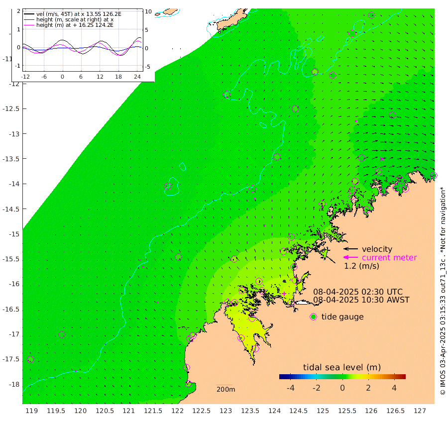 5cm/s -41T +10cm/s rms + 1cm/s 1T. NWSBRW 205m 11cm/s -27T +11cm/s rms + 6cm/s -110T. NWSROW 199m 14cm/s -9T +5cm/s rms + 2cm/s 65T. CAM050 58m 11cm/s -10T +12cm/s rms + 5cm/s 92T. CAM100 99m 3cm/s -28T +7cm/s rms + 1cm/s -85T. KIM400 396m 7cm/s -36T +9cm/s rms + 5cm/s -119T. KIM200 208m 13cm/s -26T +11cm/s rms + 5cm/s -147T. KIM100 99m 11cm/s -24T +8cm/s rms + 3cm/s -103T. KIM050 59m 18cm/s 80T +4cm/s rms + 2cm/s 23T. TIMORS88 91m 41cm Imperieuse Reef 17cm Mermaid Reef 48cm Broome 44cm Cape Baskerville 72cm Red Bluff 39cm Cape Boileau 21cm Scott Reef (WA) 35cm Ashmore Reef 84cm Karrakatta Bay 86cm Sunday Island 113cm Valentine Island 93cm Derby 95cm Port Usborne 102cm Bedford Islands 79cm Yampi Sound (Koolan Island) 96cm Macleay Island 66cm Adele Island 2cm Browse Island 95cm Shale Island 83cm Lizard Island 13cm Hall Point 71cm Degerando Island 38cm White Island 39cm Skua No. 4 Well 23cm Jabiru 50cm Maret Island 33cm Baudin Island 37cm Cape Voltaire (Krait Bay) 29cm Dillon Shoal 20cm Laminaria 42cm Port Warrender 32cm Troughton Island 49cm Cassini Island 27cm West Holothuria Reef Offshore 16cm Jar Island 32cm Lynher Bank 34cm Heywood Shoal 47cm Pee Shoal 24cm Van Cloon Shoal 1cm Carronade Island -3cm Guy Point 3cm Napier Broome Bay -20cm Lesueur Island