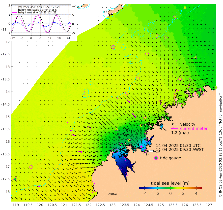 34cm/s 122T +10cm/s rms + 1cm/s 1T. NWSBRW 205m 42cm/s 134T +11cm/s rms + 6cm/s -110T. NWSROW 199m 104cm/s 140T +5cm/s rms + 2cm/s 65T. CAM050 58m 75cm/s 137T +12cm/s rms + 5cm/s 92T. CAM100 99m 15cm/s 113T +7cm/s rms + 1cm/s -85T. KIM400 396m 34cm/s 117T +9cm/s rms + 5cm/s -119T. KIM200 208m 61cm/s 123T +11cm/s rms + 5cm/s -147T. KIM100 99m 71cm/s 102T +8cm/s rms + 3cm/s -103T. KIM050 59m 22cm/s -148T +4cm/s rms + 2cm/s 23T. TIMORS88 91m -16cm Imperieuse Reef 123cm Mermaid Reef 211cm Broome 172cm Cape Baskerville 117cm Red Bluff 159cm Cape Boileau 113cm Scott Reef (WA) 102cm Ashmore Reef -14cm Karrakatta Bay -58cm Sunday Island -359cm Valentine Island -432cm Derby -299cm Port Usborne 40cm Bedford Islands 69cm Yampi Sound (Koolan Island) 111cm Macleay Island 129cm Adele Island 199cm Browse Island 6cm Shale Island -19cm Lizard Island 98cm Hall Point 121cm Degerando Island 154cm White Island 117cm Skua No. 4 Well 71cm Jabiru 178cm Maret Island 173cm Baudin Island 167cm Cape Voltaire (Krait Bay) 63cm Dillon Shoal 105cm Laminaria 150cm Port Warrender 122cm Troughton Island 174cm Cassini Island 140cm West Holothuria Reef Offshore 112cm Jar Island 116cm Lynher Bank 160cm Heywood Shoal 89cm Pee Shoal 74cm Van Cloon Shoal 114cm Carronade Island 119cm Guy Point 114cm Napier Broome Bay 71cm Lesueur Island