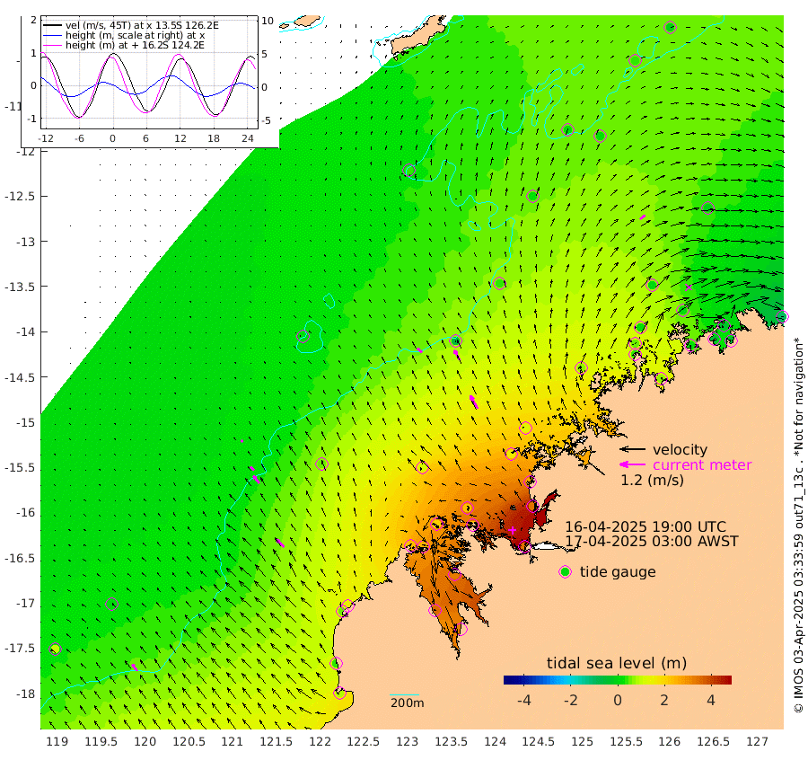 29cm/s -46T +10cm/s rms + 1cm/s 1T. NWSBRW 205m 39cm/s -35T +11cm/s rms + 6cm/s -110T. NWSROW 199m 70cm/s -31T +5cm/s rms + 2cm/s 65T. CAM050 58m 53cm/s -29T +12cm/s rms + 5cm/s 92T. CAM100 99m 10cm/s -38T +7cm/s rms + 1cm/s -85T. KIM400 396m 23cm/s -42T +9cm/s rms + 5cm/s -119T. KIM200 208m 44cm/s -38T +11cm/s rms + 5cm/s -147T. KIM100 99m 51cm/s -44T +8cm/s rms + 3cm/s -103T. KIM050 59m 31cm/s 53T +4cm/s rms + 2cm/s 23T. TIMORS88 91m 96cm Imperieuse Reef 9cm Mermaid Reef 83cm Broome 46cm Cape Baskerville 138cm Red Bluff 41cm Cape Boileau 2cm Scott Reef (WA) 33cm Ashmore Reef 233cm Karrakatta Bay 241cm Sunday Island 347cm Valentine Island 325cm Derby 320cm Port Usborne 204cm Bedford Islands 240cm Yampi Sound (Koolan Island) 228cm Macleay Island 111cm Adele Island -60cm Browse Island 342cm Shale Island 336cm Lizard Island 266cm Hall Point 152cm Degerando Island 125cm White Island 21cm Skua No. 4 Well 30cm Jabiru 61cm Maret Island 52cm Baudin Island 43cm Cape Voltaire (Krait Bay) 33cm Dillon Shoal -3cm Laminaria 71cm Port Warrender 10cm Troughton Island 27cm Cassini Island 14cm West Holothuria Reef Offshore 17cm Jar Island 50cm Lynher Bank 35cm Heywood Shoal 23cm Pee Shoal -4cm Van Cloon Shoal -38cm Carronade Island -40cm Guy Point -46cm Napier Broome Bay -102cm Lesueur Island