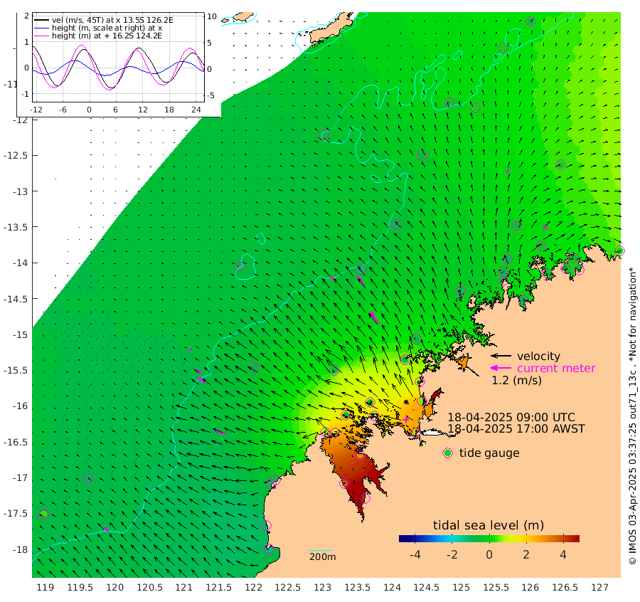 31cm/s -58T +10cm/s rms + 1cm/s 1T. NWSBRW 205m 35cm/s -47T +11cm/s rms + 6cm/s -110T. NWSROW 199m 85cm/s -36T +5cm/s rms + 2cm/s 65T. CAM050 58m 63cm/s -38T +12cm/s rms + 5cm/s 92T. CAM100 99m 13cm/s -62T +7cm/s rms + 1cm/s -85T. KIM400 396m 28cm/s -60T +9cm/s rms + 5cm/s -119T. KIM200 208m 51cm/s -52T +11cm/s rms + 5cm/s -147T. KIM100 99m 58cm/s -73T +8cm/s rms + 3cm/s -103T. KIM050 59m 24cm/s 20T +4cm/s rms + 2cm/s 23T. TIMORS88 91m 44cm Imperieuse Reef -73cm Mermaid Reef -131cm Broome -102cm Cape Baskerville -70cm Red Bluff -92cm Cape Boileau -65cm Scott Reef (WA) -41cm Ashmore Reef 71cm Karrakatta Bay 101cm Sunday Island 365cm Valentine Island 422cm Derby 308cm Port Usborne -3cm Bedford Islands 3cm Yampi Sound (Koolan Island) 4cm Macleay Island -47cm Adele Island -122cm Browse Island 64cm Shale Island 60cm Lizard Island 75cm Hall Point -52cm Degerando Island -66cm White Island -55cm Skua No. 4 Well 14cm Jabiru -96cm Maret Island -77cm Baudin Island -88cm Cape Voltaire (Krait Bay) 4cm Dillon Shoal -57cm Laminaria -62cm Port Warrender -25cm Troughton Island -84cm Cassini Island -51cm West Holothuria Reef Offshore -26cm Jar Island -65cm Lynher Bank -96cm Heywood Shoal -29cm Pee Shoal -3cm Van Cloon Shoal -30cm Carronade Island -33cm Guy Point -29cm Napier Broome Bay 18cm Lesueur Island