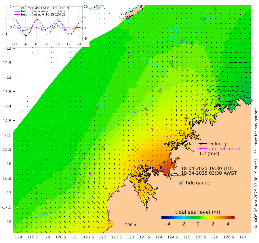 21cm/s -42T +10cm/s rms + 1cm/s 1T. NWSBRW 205m 26cm/s -31T +11cm/s rms + 6cm/s -110T. NWSROW 199m 43cm/s -32T +5cm/s rms + 2cm/s 65T. CAM050 58m 32cm/s -27T +12cm/s rms + 5cm/s 92T. CAM100 99m 6cm/s -24T +7cm/s rms + 1cm/s -85T. KIM400 396m 14cm/s -34T +9cm/s rms + 5cm/s -119T. KIM200 208m 27cm/s -34T +11cm/s rms + 5cm/s -147T. KIM100 99m 34cm/s -37T +8cm/s rms + 3cm/s -103T. KIM050 59m 23cm/s 55T +4cm/s rms + 2cm/s 23T. TIMORS88 91m 72cm Imperieuse Reef 19cm Mermaid Reef 97cm Broome 50cm Cape Baskerville 119cm Red Bluff 43cm Cape Boileau 11cm Scott Reef (WA) 35cm Ashmore Reef 191cm Karrakatta Bay 186cm Sunday Island 216cm Valentine Island 200cm Derby 225cm Port Usborne 168cm Bedford Islands 209cm Yampi Sound (Koolan Island) 206cm Macleay Island 105cm Adele Island -25cm Browse Island 296cm Shale Island 288cm Lizard Island 248cm Hall Point 138cm Degerando Island 120cm White Island 26cm Skua No. 4 Well 28cm Jabiru 68cm Maret Island 56cm Baudin Island 49cm Cape Voltaire (Krait Bay) 24cm Dillon Shoal 6cm Laminaria 55cm Port Warrender 4cm Troughton Island 35cm Cassini Island 15cm West Holothuria Reef Offshore 14cm Jar Island 51cm Lynher Bank 40cm Heywood Shoal 18cm Pee Shoal -14cm Van Cloon Shoal -39cm Carronade Island -44cm Guy Point -47cm Napier Broome Bay -109cm Lesueur Island