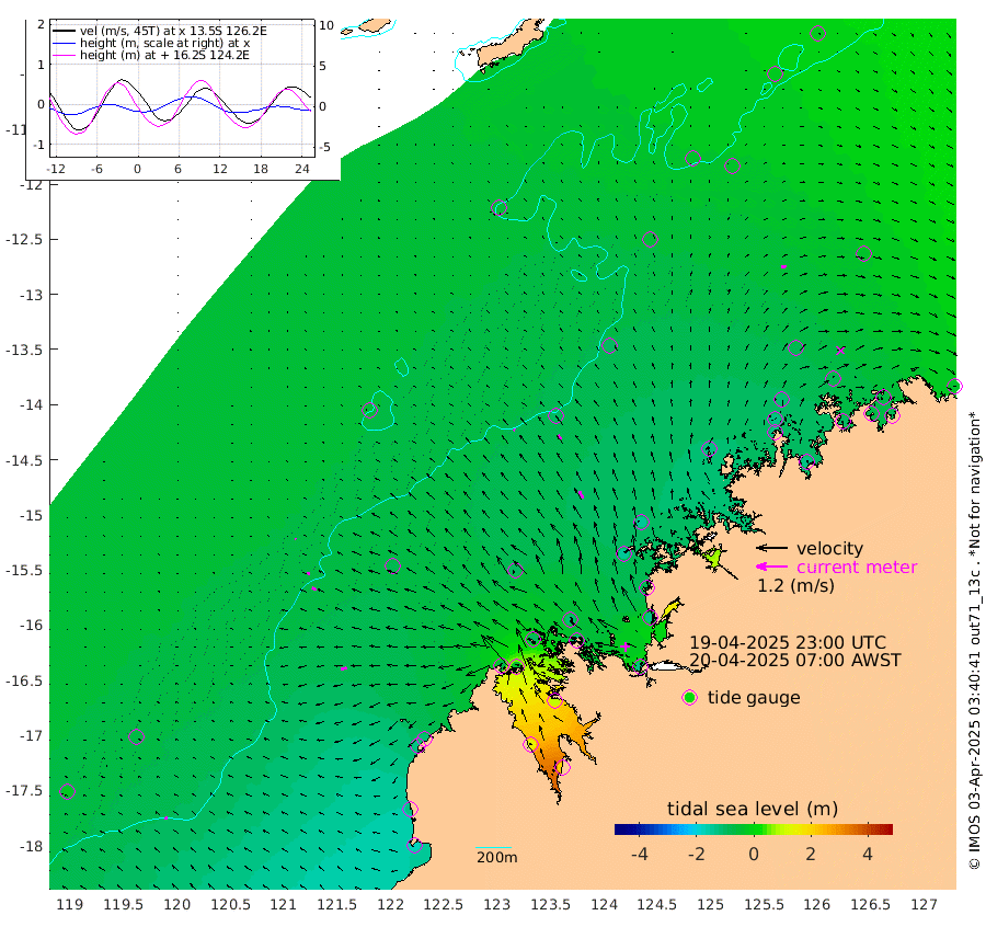 6cm/s -69T +10cm/s rms + 1cm/s 1T. NWSBRW 205m 9cm/s -63T +11cm/s rms + 6cm/s -110T. NWSROW 199m 31cm/s -29T +5cm/s rms + 2cm/s 65T. CAM050 58m 19cm/s -37T +12cm/s rms + 5cm/s 92T. CAM100 99m 4cm/s -84T +7cm/s rms + 1cm/s -85T. KIM400 396m 10cm/s -75T +9cm/s rms + 5cm/s -119T. KIM200 208m 18cm/s -70T +11cm/s rms + 5cm/s -147T. KIM100 99m 23cm/s -106T +8cm/s rms + 3cm/s -103T. KIM050 59m 20cm/s 77T +4cm/s rms + 2cm/s 23T. TIMORS88 91m -28cm Imperieuse Reef -62cm Mermaid Reef -168cm Broome -122cm Cape Baskerville -111cm Red Bluff -127cm Cape Boileau -53cm Scott Reef (WA) -54cm Ashmore Reef -69cm Karrakatta Bay -33cm Sunday Island 140cm Valentine Island 201cm Derby 104cm Port Usborne -102cm Bedford Islands -131cm Yampi Sound (Koolan Island) -111cm Macleay Island -91cm Adele Island -103cm Browse Island -131cm Shale Island -127cm Lizard Island -88cm Hall Point -142cm Degerando Island -142cm White Island -59cm Skua No. 4 Well -36cm Jabiru -129cm Maret Island -127cm Baudin Island -128cm Cape Voltaire (Krait Bay) -22cm Dillon Shoal -16cm Laminaria -135cm Port Warrender -81cm Troughton Island -116cm Cassini Island -77cm West Holothuria Reef Offshore -91cm Jar Island -83cm Lynher Bank -99cm Heywood Shoal -36cm Pee Shoal -42cm Van Cloon Shoal -70cm Carronade Island -69cm Guy Point -75cm Napier Broome Bay -42cm Lesueur Island