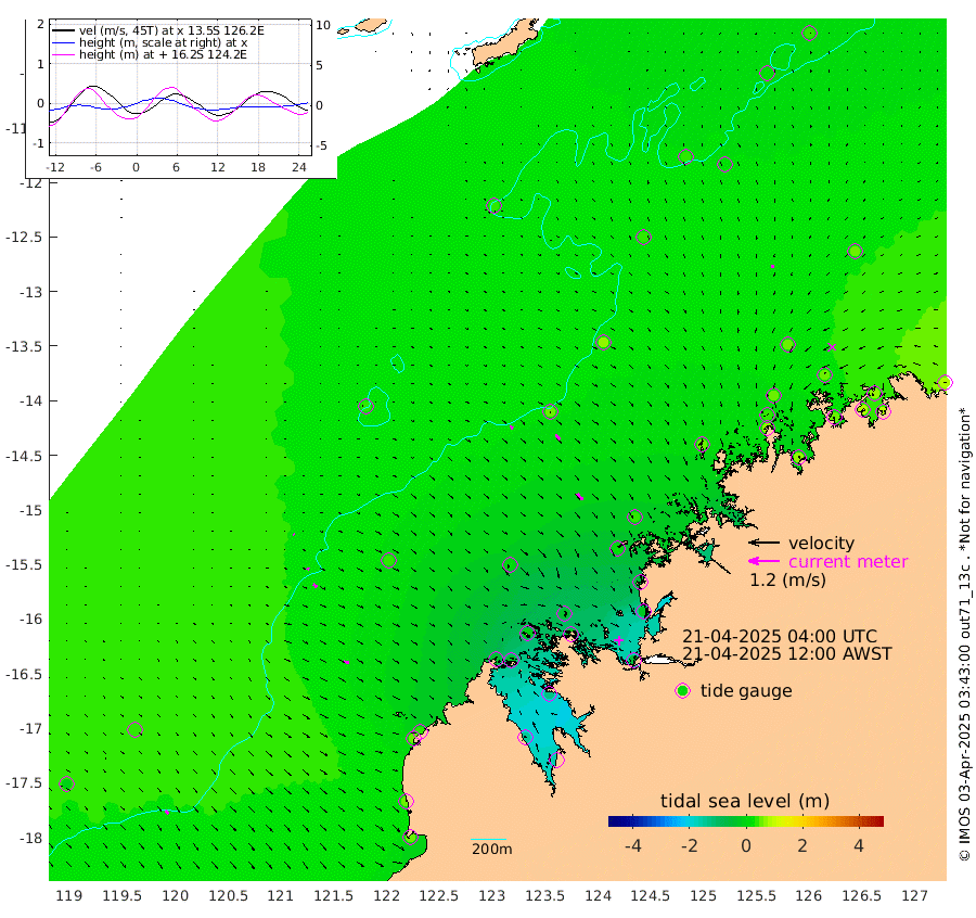 14cm/s 123T +10cm/s rms + 1cm/s 1T. NWSBRW 205m 14cm/s 136T +11cm/s rms + 6cm/s -110T. NWSROW 199m 32cm/s 140T +5cm/s rms + 2cm/s 65T. CAM050 58m 24cm/s 134T +12cm/s rms + 5cm/s 92T. CAM100 99m 4cm/s 121T +7cm/s rms + 1cm/s -85T. KIM400 396m 9cm/s 123T +9cm/s rms + 5cm/s -119T. KIM200 208m 18cm/s 129T +11cm/s rms + 5cm/s -147T. KIM100 99m 22cm/s 106T +8cm/s rms + 3cm/s -103T. KIM050 59m 11cm/s -179T +4cm/s rms + 2cm/s 23T. TIMORS88 91m -1cm Imperieuse Reef 41cm Mermaid Reef 51cm Broome 47cm Cape Baskerville 35cm Red Bluff 56cm Cape Boileau 39cm Scott Reef (WA) 31cm Ashmore Reef -41cm Karrakatta Bay -35cm Sunday Island -148cm Valentine Island -165cm Derby -134cm Port Usborne 0cm Bedford Islands -6cm Yampi Sound (Koolan Island) -42cm Macleay Island 13cm Adele Island 48cm Browse Island -49cm Shale Island -18cm Lizard Island -53cm Hall Point 28cm Degerando Island 33cm White Island 34cm Skua No. 4 Well 24cm Jabiru 48cm Maret Island 41cm Baudin Island 60cm Cape Voltaire (Krait Bay) 21cm Dillon Shoal 41cm Laminaria 66cm Port Warrender 50cm Troughton Island 55cm Cassini Island 49cm West Holothuria Reef Offshore 52cm Jar Island 43cm Lynher Bank 62cm Heywood Shoal 36cm Pee Shoal 51cm Van Cloon Shoal 73cm Carronade Island 76cm Guy Point 82cm Napier Broome Bay 85cm Lesueur Island