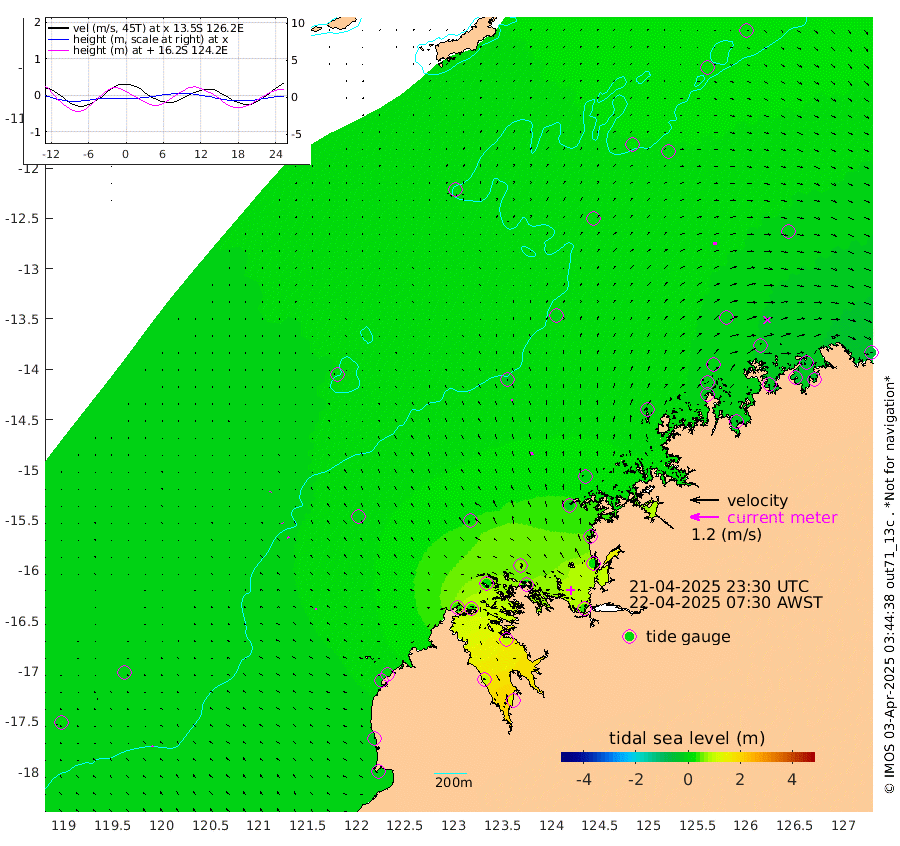 2cm/s -42T +10cm/s rms + 1cm/s 1T. NWSBRW 205m 5cm/s -28T +11cm/s rms + 6cm/s -110T. NWSROW 199m 11cm/s -9T +5cm/s rms + 2cm/s 65T. CAM050 58m 6cm/s -5T +12cm/s rms + 5cm/s 92T. CAM100 99m 1cm/s 25T +7cm/s rms + 1cm/s -85T. KIM400 396m 3cm/s -39T +9cm/s rms + 5cm/s -119T. KIM200 208m 7cm/s -37T +11cm/s rms + 5cm/s -147T. KIM100 99m 5cm/s -63T +8cm/s rms + 3cm/s -103T. KIM050 59m 17cm/s 77T +4cm/s rms + 2cm/s 23T. TIMORS88 91m 8cm Imperieuse Reef -2cm Mermaid Reef -13cm Broome -11cm Cape Baskerville 4cm Red Bluff -21cm Cape Boileau 2cm Scott Reef (WA) 10cm Ashmore Reef 34cm Karrakatta Bay 43cm Sunday Island 95cm Valentine Island 112cm Derby 91cm Port Usborne 19cm Bedford Islands 16cm Yampi Sound (Koolan Island) 61cm Macleay Island 28cm Adele Island -15cm Browse Island 33cm Shale Island 16cm Lizard Island 45cm Hall Point -2cm Degerando Island -8cm White Island 10cm Skua No. 4 Well 9cm Jabiru -4cm Maret Island -12cm Baudin Island -19cm Cape Voltaire (Krait Bay) 16cm Dillon Shoal 19cm Laminaria -29cm Port Warrender -13cm Troughton Island -7cm Cassini Island -4cm West Holothuria Reef Offshore -25cm Jar Island -4cm Lynher Bank -10cm Heywood Shoal 16cm Pee Shoal -10cm Van Cloon Shoal -34cm Carronade Island -36cm Guy Point -39cm Napier Broome Bay -56cm Lesueur Island