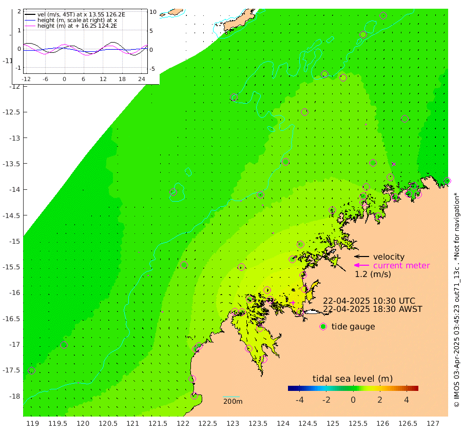 5cm/s -41T +10cm/s rms + 1cm/s 1T. NWSBRW 205m 5cm/s -30T +11cm/s rms + 6cm/s -110T. NWSROW 199m 7cm/s -10T +5cm/s rms + 2cm/s 65T. CAM050 58m 6cm/s -14T +12cm/s rms + 5cm/s 92T. CAM100 99m 2cm/s 17T +7cm/s rms + 1cm/s -85T. KIM400 396m 2cm/s -9T +9cm/s rms + 5cm/s -119T. KIM200 208m 6cm/s -6T +11cm/s rms + 5cm/s -147T. KIM100 99m 7cm/s 1T +8cm/s rms + 3cm/s -103T. KIM050 59m 10cm/s 4T +4cm/s rms + 2cm/s 23T. TIMORS88 91m 42cm Imperieuse Reef 27cm Mermaid Reef 52cm Broome 40cm Cape Baskerville 36cm Red Bluff 47cm Cape Boileau 32cm Scott Reef (WA) 39cm Ashmore Reef 81cm Karrakatta Bay 67cm Sunday Island 110cm Valentine Island 91cm Derby 96cm Port Usborne 57cm Bedford Islands 76cm Yampi Sound (Koolan Island) 119cm Macleay Island 65cm Adele Island 32cm Browse Island 104cm Shale Island 117cm Lizard Island 100cm Hall Point 58cm Degerando Island 55cm White Island 51cm Skua No. 4 Well 61cm Jabiru 51cm Maret Island 43cm Baudin Island 46cm Cape Voltaire (Krait Bay) 48cm Dillon Shoal 30cm Laminaria 46cm Port Warrender 53cm Troughton Island 50cm Cassini Island 43cm West Holothuria Reef Offshore 40cm Jar Island 33cm Lynher Bank 44cm Heywood Shoal 48cm Pee Shoal 35cm Van Cloon Shoal 26cm Carronade Island 29cm Guy Point 34cm Napier Broome Bay 8cm Lesueur Island