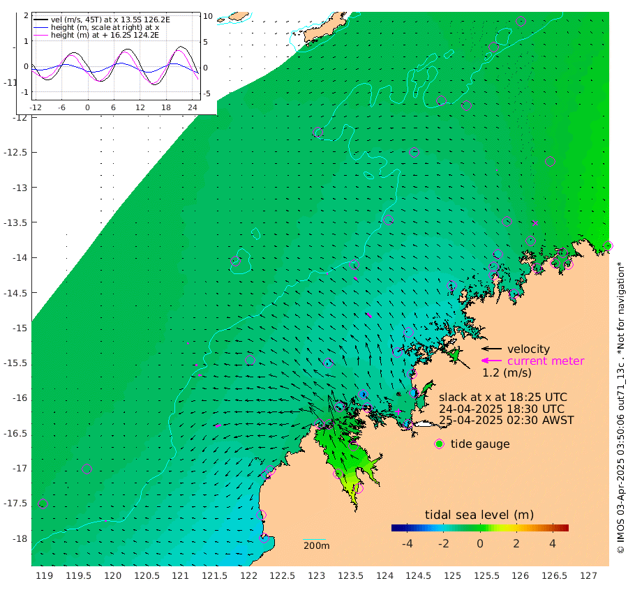 7cm/s -81T +10cm/s rms + 1cm/s 1T. NWSBRW 205m 8cm/s -89T +11cm/s rms + 6cm/s -110T. NWSROW 199m 34cm/s -48T +5cm/s rms + 2cm/s 65T. CAM050 58m 24cm/s -56T +12cm/s rms + 5cm/s 92T. CAM100 99m 7cm/s -96T +7cm/s rms + 1cm/s -85T. KIM400 396m 11cm/s -85T +9cm/s rms + 5cm/s -119T. KIM200 208m 18cm/s -86T +11cm/s rms + 5cm/s -147T. KIM100 99m 32cm/s -108T +8cm/s rms + 3cm/s -103T. KIM050 59m 4cm/s -100T +4cm/s rms + 2cm/s 23T. TIMORS88 91m -58cm Imperieuse Reef -98cm Mermaid Reef -214cm Broome -157cm Cape Baskerville -159cm Red Bluff -162cm Cape Boileau -99cm Scott Reef (WA) -104cm Ashmore Reef -141cm Karrakatta Bay -119cm Sunday Island 33cm Valentine Island 90cm Derby -5cm Port Usborne -169cm Bedford Islands -199cm Yampi Sound (Koolan Island) -261cm Macleay Island -184cm Adele Island -133cm Browse Island -210cm Shale Island -222cm Lizard Island -172cm Hall Point -193cm Degerando Island -184cm White Island -121cm Skua No. 4 Well -93cm Jabiru -179cm Maret Island -150cm Baudin Island -159cm Cape Voltaire (Krait Bay) -78cm Dillon Shoal -79cm Laminaria -153cm Port Warrender -107cm Troughton Island -160cm Cassini Island -117cm West Holothuria Reef Offshore -93cm Jar Island -125cm Lynher Bank -145cm Heywood Shoal -104cm Pee Shoal -66cm Van Cloon Shoal -63cm Carronade Island -62cm Guy Point -76cm Napier Broome Bay 15cm Lesueur Island