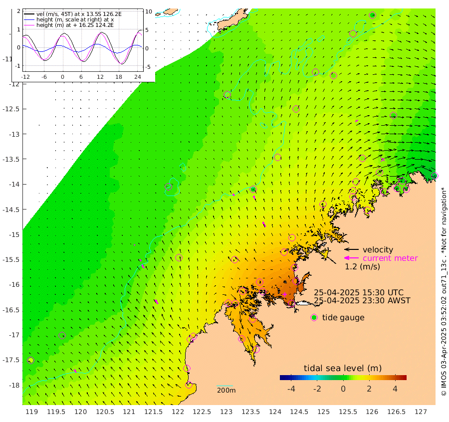 21cm/s -42T +10cm/s rms + 1cm/s 1T. NWSBRW 205m 30cm/s -32T +11cm/s rms + 6cm/s -110T. NWSROW 199m 47cm/s -29T +5cm/s rms + 2cm/s 65T. CAM050 58m 37cm/s -26T +12cm/s rms + 5cm/s 92T. CAM100 99m 9cm/s -34T +7cm/s rms + 1cm/s -85T. KIM400 396m 18cm/s -36T +9cm/s rms + 5cm/s -119T. KIM200 208m 34cm/s -31T +11cm/s rms + 5cm/s -147T. KIM100 99m 41cm/s -31T +8cm/s rms + 3cm/s -103T. KIM050 59m 21cm/s 52T +4cm/s rms + 2cm/s 23T. TIMORS88 91m 107cm Imperieuse Reef 38cm Mermaid Reef 147cm Broome 107cm Cape Baskerville 191cm Red Bluff 109cm Cape Boileau 35cm Scott Reef (WA) 70cm Ashmore Reef 246cm Karrakatta Bay 236cm Sunday Island 272cm Valentine Island 230cm Derby 250cm Port Usborne 234cm Bedford Islands 261cm Yampi Sound (Koolan Island) 273cm Macleay Island 159cm Adele Island -1cm Browse Island 338cm Shale Island 296cm Lizard Island 211cm Hall Point 201cm Degerando Island 159cm White Island 69cm Skua No. 4 Well 48cm Jabiru 124cm Maret Island 107cm Baudin Island 106cm Cape Voltaire (Krait Bay) 74cm Dillon Shoal 16cm Laminaria 133cm Port Warrender 69cm Troughton Island 104cm Cassini Island 66cm West Holothuria Reef Offshore 63cm Jar Island 76cm Lynher Bank 96cm Heywood Shoal 69cm Pee Shoal 38cm Van Cloon Shoal 10cm Carronade Island 10cm Guy Point 10cm Napier Broome Bay -65cm Lesueur Island
