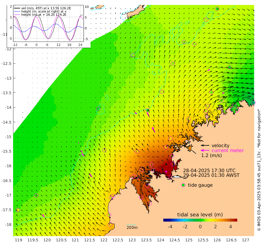 36cm/s -45T +10cm/s rms + 1cm/s 1T. NWSBRW 205m 48cm/s -34T +11cm/s rms + 6cm/s -110T. NWSROW 199m 81cm/s -29T +5cm/s rms + 2cm/s 65T. CAM050 58m 62cm/s -27T +12cm/s rms + 5cm/s 92T. CAM100 99m 13cm/s -35T +7cm/s rms + 1cm/s -85T. KIM400 396m 29cm/s -39T +9cm/s rms + 5cm/s -119T. KIM200 208m 54cm/s -35T +11cm/s rms + 5cm/s -147T. KIM100 99m 63cm/s -38T +8cm/s rms + 3cm/s -103T. KIM050 59m 39cm/s 56T +4cm/s rms + 2cm/s 23T. TIMORS88 91m 143cm Imperieuse Reef 34cm Mermaid Reef 157cm Broome 102cm Cape Baskerville 211cm Red Bluff 102cm Cape Boileau 29cm Scott Reef (WA) 74cm Ashmore Reef 330cm Karrakatta Bay 331cm Sunday Island 399cm Valentine Island 376cm Derby 392cm Port Usborne 307cm Bedford Islands 337cm Yampi Sound (Koolan Island) 331cm Macleay Island 180cm Adele Island -44cm Browse Island 461cm Shale Island 422cm Lizard Island 292cm Hall Point 242cm Degerando Island 184cm White Island 67cm Skua No. 4 Well 63cm Jabiru 125cm Maret Island 106cm Baudin Island 101cm Cape Voltaire (Krait Bay) 75cm Dillon Shoal 17cm Laminaria 123cm Port Warrender 51cm Troughton Island 90cm Cassini Island 49cm West Holothuria Reef Offshore 52cm Jar Island 90cm Lynher Bank 90cm Heywood Shoal 66cm Pee Shoal 25cm Van Cloon Shoal -23cm Carronade Island -25cm Guy Point -25cm Napier Broome Bay -109cm Lesueur Island