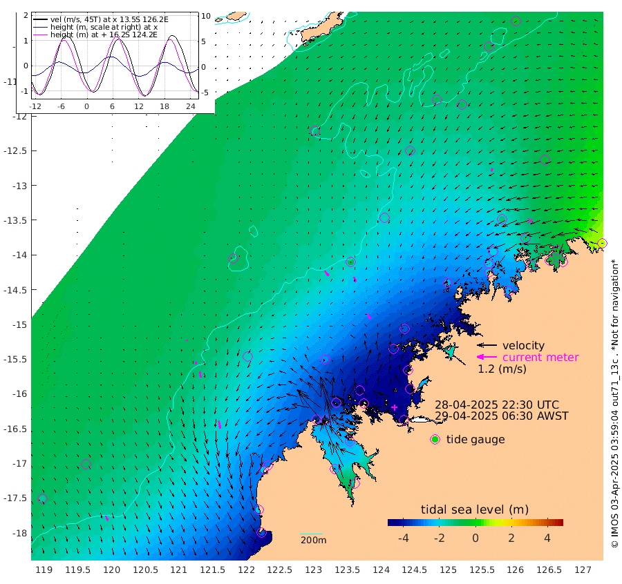 36cm/s 141T +10cm/s rms + 1cm/s 1T. NWSBRW 205m 32cm/s 155T +11cm/s rms + 6cm/s -110T. NWSROW 199m 34cm/s 157T +5cm/s rms + 2cm/s 65T. CAM050 58m 33cm/s 161T +12cm/s rms + 5cm/s 92T. CAM100 99m 8cm/s 173T +7cm/s rms + 1cm/s -85T. KIM400 396m 16cm/s 165T +9cm/s rms + 5cm/s -119T. KIM200 208m 36cm/s 167T +11cm/s rms + 5cm/s -147T. KIM100 99m 47cm/s 169T +8cm/s rms + 3cm/s -103T. KIM050 59m 19cm/s -155T +4cm/s rms + 2cm/s 23T. TIMORS88 91m -148cm Imperieuse Reef -90cm Mermaid Reef -318cm Broome -216cm Cape Baskerville -297cm Red Bluff -221cm Cape Boileau -83cm Scott Reef (WA) -117cm Ashmore Reef -365cm Karrakatta Bay -335cm Sunday Island -246cm Valentine Island -151cm Derby -266cm Port Usborne -386cm Bedford Islands -443cm Yampi Sound (Koolan Island) -465cm Macleay Island -280cm Adele Island -89cm Browse Island -548cm Shale Island -537cm Lizard Island -390cm Hall Point -366cm Degerando Island -317cm White Island -121cm Skua No. 4 Well -98cm Jabiru -249cm Maret Island -217cm Baudin Island -217cm Cape Voltaire (Krait Bay) -78cm Dillon Shoal -23cm Laminaria -246cm Port Warrender -121cm Troughton Island -198cm Cassini Island -122cm West Holothuria Reef Offshore -122cm Jar Island -169cm Lynher Bank -166cm Heywood Shoal -99cm Pee Shoal -53cm Van Cloon Shoal -33cm Carronade Island -24cm Guy Point -38cm Napier Broome Bay 94cm Lesueur Island