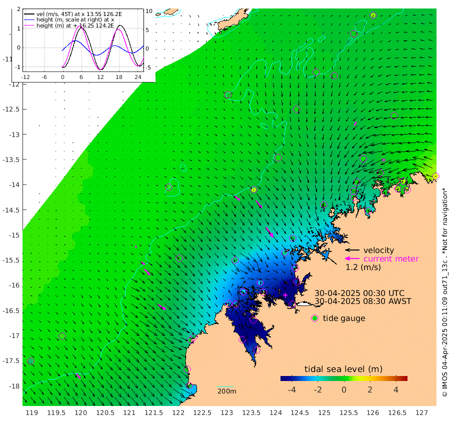 52cm/s 130T +10cm/s rms + 1cm/s 1T. NWSBRW 205m 53cm/s 143T +11cm/s rms + 6cm/s -110T. NWSROW 199m 101cm/s 144T +5cm/s rms + 2cm/s 65T. CAM050 58m 79cm/s 143T +12cm/s rms + 5cm/s 92T. CAM100 99m 15cm/s 132T +7cm/s rms + 1cm/s -85T. KIM400 396m 34cm/s 131T +9cm/s rms + 5cm/s -119T. KIM200 208m 66cm/s 138T +11cm/s rms + 5cm/s -147T. KIM100 99m 73cm/s 124T +8cm/s rms + 3cm/s -103T. KIM050 59m 32cm/s -148T +4cm/s rms + 2cm/s 23T. TIMORS88 91m -107cm Imperieuse Reef 37cm Mermaid Reef -45cm Broome -9cm Cape Baskerville -104cm Red Bluff -13cm Cape Boileau 36cm Scott Reef (WA) -1cm Ashmore Reef -259cm Karrakatta Bay -260cm Sunday Island -437cm Valentine Island -434cm Derby -409cm Port Usborne -217cm Bedford Islands -237cm Yampi Sound (Koolan Island) -231cm Macleay Island -87cm Adele Island 93cm Browse Island -363cm Shale Island -348cm Lizard Island -223cm Hall Point -143cm Degerando Island -86cm White Island 9cm Skua No. 4 Well -16cm Jabiru -26cm Maret Island -15cm Baudin Island -9cm Cape Voltaire (Krait Bay) -6cm Dillon Shoal 64cm Laminaria -32cm Port Warrender 15cm Troughton Island 2cm Cassini Island 28cm West Holothuria Reef Offshore 9cm Jar Island -14cm Lynher Bank 20cm Heywood Shoal 5cm Pee Shoal 28cm Van Cloon Shoal 75cm Carronade Island 87cm Guy Point 77cm Napier Broome Bay 127cm Lesueur Island