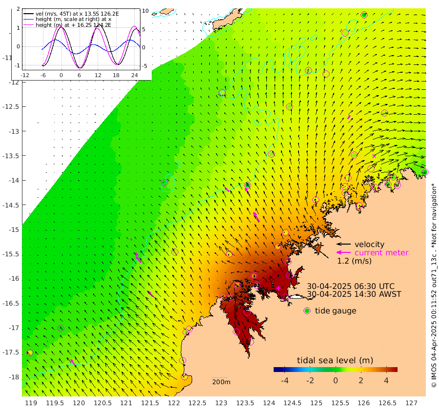 46cm/s -49T +10cm/s rms + 1cm/s 1T. NWSBRW 205m 54cm/s -36T +11cm/s rms + 6cm/s -110T. NWSROW 199m 100cm/s -32T +5cm/s rms + 2cm/s 65T. CAM050 58m 78cm/s -31T +12cm/s rms + 5cm/s 92T. CAM100 99m 16cm/s -44T +7cm/s rms + 1cm/s -85T. KIM400 396m 34cm/s -44T +9cm/s rms + 5cm/s -119T. KIM200 208m 66cm/s -37T +11cm/s rms + 5cm/s -147T. KIM100 99m 74cm/s -47T +8cm/s rms + 3cm/s -103T. KIM050 59m 38cm/s 33T +4cm/s rms + 2cm/s 23T. TIMORS88 91m 172cm Imperieuse Reef 22cm Mermaid Reef 128cm Broome 80cm Cape Baskerville 152cm Red Bluff 91cm Cape Boileau 26cm Scott Reef (WA) 79cm Ashmore Reef 329cm Karrakatta Bay 332cm Sunday Island 507cm Valentine Island 492cm Derby 474cm Port Usborne 290cm Bedford Islands 330cm Yampi Sound (Koolan Island) 325cm Macleay Island 167cm Adele Island -35cm Browse Island 459cm Shale Island 462cm Lizard Island 308cm Hall Point 235cm Degerando Island 178cm White Island 73cm Skua No. 4 Well 111cm Jabiru 122cm Maret Island 105cm Baudin Island 114cm Cape Voltaire (Krait Bay) 90cm Dillon Shoal 1cm Laminaria 154cm Port Warrender 116cm Troughton Island 105cm Cassini Island 73cm West Holothuria Reef Offshore 105cm Jar Island 87cm Lynher Bank 70cm Heywood Shoal 85cm Pee Shoal 77cm Van Cloon Shoal 46cm Carronade Island 38cm Guy Point 50cm Napier Broome Bay 18cm Lesueur Island