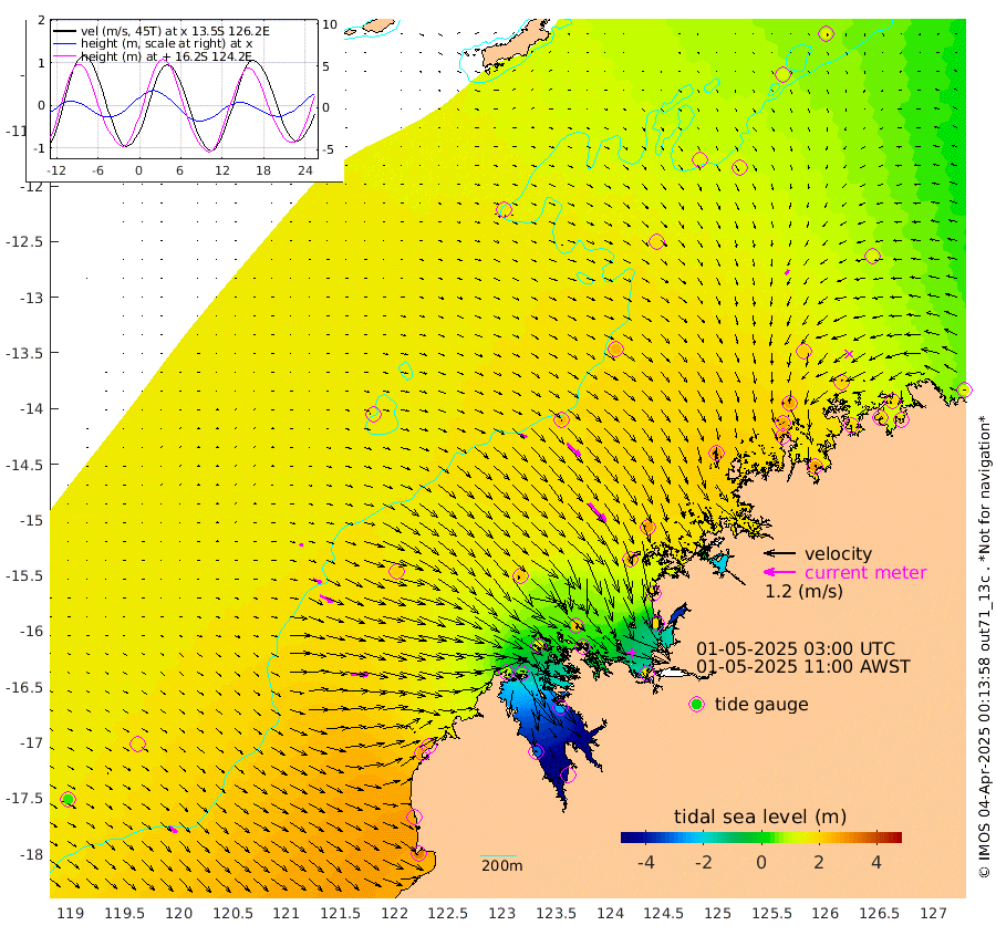 27cm/s 113T +10cm/s rms + 1cm/s 1T. NWSBRW 205m 36cm/s 128T +11cm/s rms + 6cm/s -110T. NWSROW 199m 97cm/s 138T +5cm/s rms + 2cm/s 65T. CAM050 58m 69cm/s 132T +12cm/s rms + 5cm/s 92T. CAM100 99m 15cm/s 105T +7cm/s rms + 1cm/s -85T. KIM400 396m 33cm/s 112T +9cm/s rms + 5cm/s -119T. KIM200 208m 58cm/s 116T +11cm/s rms + 5cm/s -147T. KIM100 99m 70cm/s 91T +8cm/s rms + 3cm/s -103T. KIM050 59m 20cm/s -146T +4cm/s rms + 2cm/s 23T. TIMORS88 91m 44cm Imperieuse Reef 175cm Mermaid Reef 327cm Broome 255cm Cape Baskerville 216cm Red Bluff 257cm Cape Boileau 163cm Scott Reef (WA) 156cm Ashmore Reef 84cm Karrakatta Bay 52cm Sunday Island -303cm Valentine Island -407cm Derby -241cm Port Usborne 165cm Bedford Islands 214cm Yampi Sound (Koolan Island) 228cm Macleay Island 217cm Adele Island 238cm Browse Island 166cm Shale Island 181cm Lizard Island 199cm Hall Point 250cm Degerando Island 278cm White Island 170cm Skua No. 4 Well 125cm Jabiru 275cm Maret Island 258cm Baudin Island 269cm Cape Voltaire (Krait Bay) 109cm Dillon Shoal 139cm Laminaria 279cm Port Warrender 198cm Troughton Island 256cm Cassini Island 210cm West Holothuria Reef Offshore 193cm Jar Island 200cm Lynher Bank 250cm Heywood Shoal 143cm Pee Shoal 134cm Van Cloon Shoal 185cm Carronade Island 196cm Guy Point 193cm Napier Broome Bay 124cm Lesueur Island
