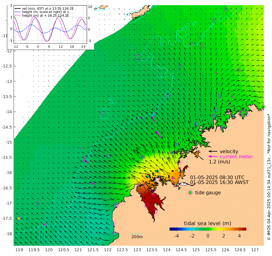 44cm/s -57T +10cm/s rms + 1cm/s 1T. NWSBRW 205m 47cm/s -46T +11cm/s rms + 6cm/s -110T. NWSROW 199m 112cm/s -36T +5cm/s rms + 2cm/s 65T. CAM050 58m 83cm/s -39T +12cm/s rms + 5cm/s 92T. CAM100 99m 18cm/s -63T +7cm/s rms + 1cm/s -85T. KIM400 396m 38cm/s -60T +9cm/s rms + 5cm/s -119T. KIM200 208m 68cm/s -51T +11cm/s rms + 5cm/s -147T. KIM100 99m 78cm/s -74T +8cm/s rms + 3cm/s -103T. KIM050 59m 32cm/s 25T +4cm/s rms + 2cm/s 23T. TIMORS88 91m 62cm Imperieuse Reef -103cm Mermaid Reef -177cm Broome -142cm Cape Baskerville -106cm Red Bluff -128cm Cape Boileau -88cm Scott Reef (WA) -57cm Ashmore Reef 79cm Karrakatta Bay 108cm Sunday Island 459cm Valentine Island 536cm Derby 396cm Port Usborne -1cm Bedford Islands -12cm Yampi Sound (Koolan Island) -20cm Macleay Island -76cm Adele Island -166cm Browse Island 71cm Shale Island 79cm Lizard Island -13cm Hall Point -71cm Degerando Island -113cm White Island -67cm Skua No. 4 Well -2cm Jabiru -129cm Maret Island -124cm Baudin Island -116cm Cape Voltaire (Krait Bay) -6cm Dillon Shoal -82cm Laminaria -98cm Port Warrender -39cm Troughton Island -109cm Cassini Island -84cm West Holothuria Reef Offshore -47cm Jar Island -92cm Lynher Bank -127cm Heywood Shoal -34cm Pee Shoal -15cm Van Cloon Shoal -54cm Carronade Island -62cm Guy Point -51cm Napier Broome Bay 5cm Lesueur Island