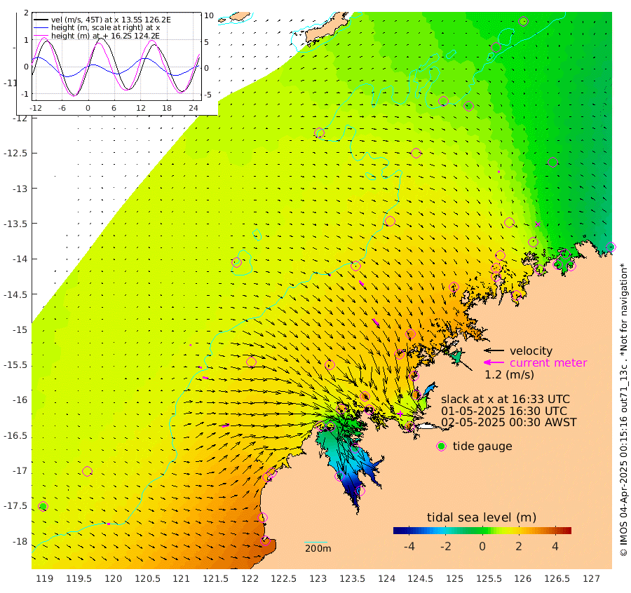 6cm/s 69T +10cm/s rms + 1cm/s 1T. NWSBRW 205m 15cm/s 102T +11cm/s rms + 6cm/s -110T. NWSROW 199m 52cm/s 142T +5cm/s rms + 2cm/s 65T. CAM050 58m 35cm/s 132T +12cm/s rms + 5cm/s 92T. CAM100 99m 11cm/s 93T +7cm/s rms + 1cm/s -85T. KIM400 396m 20cm/s 99T +9cm/s rms + 5cm/s -119T. KIM200 208m 32cm/s 102T +11cm/s rms + 5cm/s -147T. KIM100 99m 46cm/s 70T +8cm/s rms + 3cm/s -103T. KIM050 59m 12cm/s -132T +4cm/s rms + 2cm/s 23T. TIMORS88 91m 41cm Imperieuse Reef 120cm Mermaid Reef 326cm Broome 229cm Cape Baskerville 253cm Red Bluff 216cm Cape Boileau 101cm Scott Reef (WA) 95cm Ashmore Reef 176cm Karrakatta Bay 134cm Sunday Island -165cm Valentine Island -289cm Derby -105cm Port Usborne 250cm Bedford Islands 299cm Yampi Sound (Koolan Island) 313cm Macleay Island 221cm Adele Island 164cm Browse Island 321cm Shale Island 314cm Lizard Island 293cm Hall Point 283cm Degerando Island 286cm White Island 102cm Skua No. 4 Well 45cm Jabiru 237cm Maret Island 214cm Baudin Island 204cm Cape Voltaire (Krait Bay) 26cm Dillon Shoal 51cm Laminaria 212cm Port Warrender 75cm Troughton Island 177cm Cassini Island 112cm West Holothuria Reef Offshore 88cm Jar Island 167cm Lynher Bank 176cm Heywood Shoal 58cm Pee Shoal 10cm Van Cloon Shoal 28cm Carronade Island 28cm Guy Point 22cm Napier Broome Bay -106cm Lesueur Island
