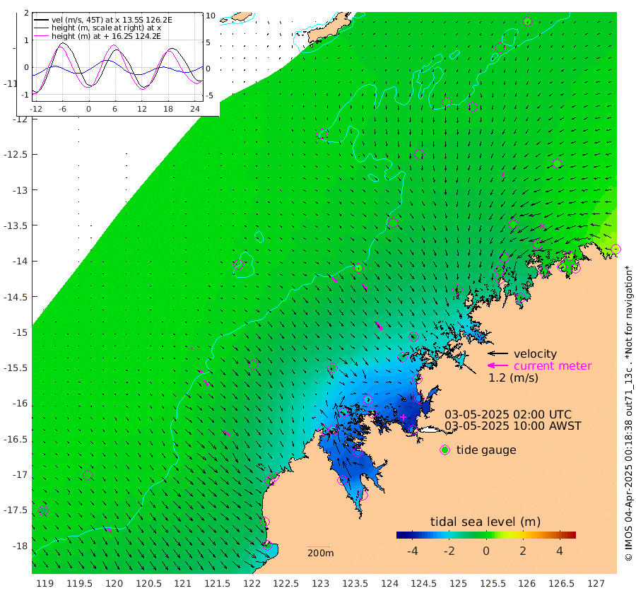 36cm/s 131T +10cm/s rms + 1cm/s 1T. NWSBRW 205m 32cm/s 144T +11cm/s rms + 6cm/s -110T. NWSROW 199m 61cm/s 145T +5cm/s rms + 2cm/s 65T. CAM050 58m 48cm/s 143T +12cm/s rms + 5cm/s 92T. CAM100 99m 8cm/s 136T +7cm/s rms + 1cm/s -85T. KIM400 396m 19cm/s 136T +9cm/s rms + 5cm/s -119T. KIM200 208m 38cm/s 143T +11cm/s rms + 5cm/s -147T. KIM100 99m 45cm/s 127T +8cm/s rms + 3cm/s -103T. KIM050 59m 22cm/s -164T +4cm/s rms + 2cm/s 23T. TIMORS88 91m -72cm Imperieuse Reef 14cm Mermaid Reef -53cm Broome -17cm Cape Baskerville -53cm Red Bluff -17cm Cape Boileau 12cm Scott Reef (WA) -3cm Ashmore Reef -177cm Karrakatta Bay -180cm Sunday Island -297cm Valentine Island -285cm Derby -287cm Port Usborne -161cm Bedford Islands -181cm Yampi Sound (Koolan Island) -197cm Macleay Island -76cm Adele Island 40cm Browse Island -272cm Shale Island -276cm Lizard Island -172cm Hall Point -114cm Degerando Island -82cm White Island -2cm Skua No. 4 Well -15cm Jabiru -32cm Maret Island -17cm Baudin Island -18cm Cape Voltaire (Krait Bay) -1cm Dillon Shoal 39cm Laminaria -33cm Port Warrender 7cm Troughton Island -1cm Cassini Island 17cm West Holothuria Reef Offshore 8cm Jar Island -26cm Lynher Bank 5cm Heywood Shoal 3cm Pee Shoal 31cm Van Cloon Shoal 56cm Carronade Island 60cm Guy Point 62cm Napier Broome Bay 103cm Lesueur Island
