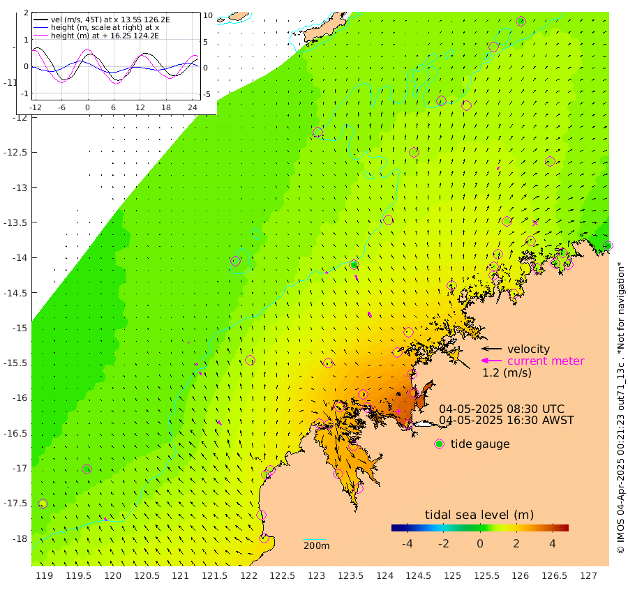 19cm/s -43T +10cm/s rms + 1cm/s 1T. NWSBRW 205m 22cm/s -32T +11cm/s rms + 6cm/s -110T. NWSROW 199m 36cm/s -29T +5cm/s rms + 2cm/s 65T. CAM050 58m 29cm/s -25T +12cm/s rms + 5cm/s 92T. CAM100 99m 6cm/s -27T +7cm/s rms + 1cm/s -85T. KIM400 396m 11cm/s -33T +9cm/s rms + 5cm/s -119T. KIM200 208m 23cm/s -30T +11cm/s rms + 5cm/s -147T. KIM100 99m 28cm/s -30T +8cm/s rms + 3cm/s -103T. KIM050 59m 21cm/s 24T +4cm/s rms + 2cm/s 23T. TIMORS88 91m 97cm Imperieuse Reef 44cm Mermaid Reef 112cm Broome 74cm Cape Baskerville 88cm Red Bluff 91cm Cape Boileau 47cm Scott Reef (WA) 63cm Ashmore Reef 184cm Karrakatta Bay 196cm Sunday Island 231cm Valentine Island 222cm Derby 234cm Port Usborne 169cm Bedford Islands 204cm Yampi Sound (Koolan Island) 220cm Macleay Island 122cm Adele Island 22cm Browse Island 267cm Shale Island 287cm Lizard Island 214cm Hall Point 156cm Degerando Island 140cm White Island 66cm Skua No. 4 Well 95cm Jabiru 96cm Maret Island 87cm Baudin Island 95cm Cape Voltaire (Krait Bay) 75cm Dillon Shoal 33cm Laminaria 117cm Port Warrender 85cm Troughton Island 80cm Cassini Island 70cm West Holothuria Reef Offshore 81cm Jar Island 83cm Lynher Bank 79cm Heywood Shoal 66cm Pee Shoal 62cm Van Cloon Shoal 53cm Carronade Island 58cm Guy Point 63cm Napier Broome Bay 28cm Lesueur Island