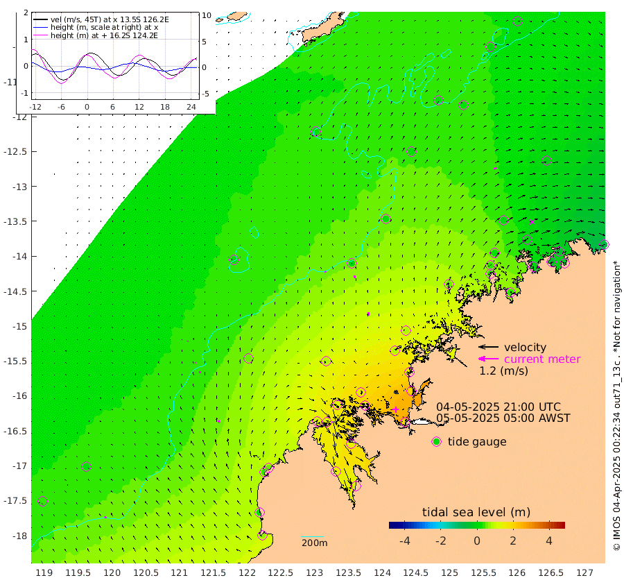 9cm/s -42T +10cm/s rms + 1cm/s 1T. NWSBRW 205m 13cm/s -27T +11cm/s rms + 6cm/s -110T. NWSROW 199m 19cm/s -19T +5cm/s rms + 2cm/s 65T. CAM050 58m 14cm/s -14T +12cm/s rms + 5cm/s 92T. CAM100 99m 2cm/s 25T +7cm/s rms + 1cm/s -85T. KIM400 396m 6cm/s -9T +9cm/s rms + 5cm/s -119T. KIM200 208m 12cm/s -15T +11cm/s rms + 5cm/s -147T. KIM100 99m 15cm/s -20T +8cm/s rms + 3cm/s -103T. KIM050 59m 17cm/s 53T +4cm/s rms + 2cm/s 23T. TIMORS88 91m 42cm Imperieuse Reef 25cm Mermaid Reef 69cm Broome 41cm Cape Baskerville 52cm Red Bluff 26cm Cape Boileau 23cm Scott Reef (WA) 28cm Ashmore Reef 111cm Karrakatta Bay 117cm Sunday Island 148cm Valentine Island 123cm Derby 150cm Port Usborne 121cm Bedford Islands 130cm Yampi Sound (Koolan Island) 156cm Macleay Island 80cm Adele Island 5cm Browse Island 179cm Shale Island 192cm Lizard Island 137cm Hall Point 89cm Degerando Island 80cm White Island 28cm Skua No. 4 Well 23cm Jabiru 52cm Maret Island 37cm Baudin Island 32cm Cape Voltaire (Krait Bay) 10cm Dillon Shoal 22cm Laminaria 34cm Port Warrender 7cm Troughton Island 22cm Cassini Island 12cm West Holothuria Reef Offshore 0cm Jar Island 50cm Lynher Bank 24cm Heywood Shoal 21cm Pee Shoal -14cm Van Cloon Shoal -32cm Carronade Island -31cm Guy Point -42cm Napier Broome Bay -75cm Lesueur Island