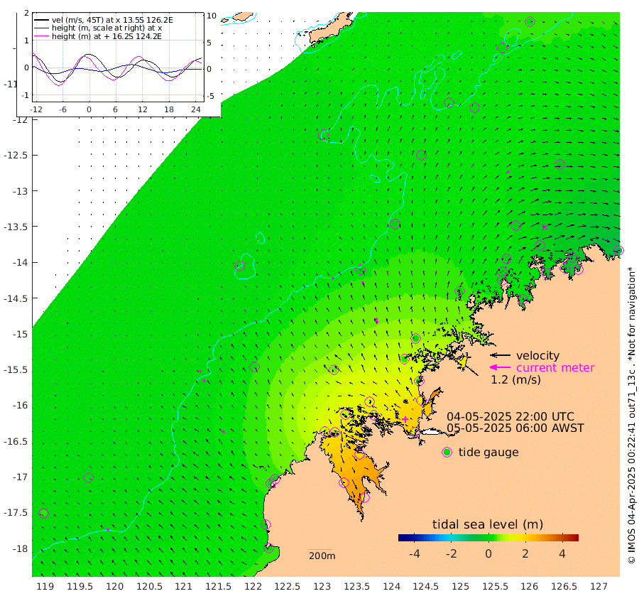 11cm/s -52T +10cm/s rms + 1cm/s 1T. NWSBRW 205m 15cm/s -35T +11cm/s rms + 6cm/s -110T. NWSROW 199m 30cm/s -21T +5cm/s rms + 2cm/s 65T. CAM050 58m 22cm/s -22T +12cm/s rms + 5cm/s 92T. CAM100 99m 3cm/s -20T +7cm/s rms + 1cm/s -85T. KIM400 396m 9cm/s -37T +9cm/s rms + 5cm/s -119T. KIM200 208m 18cm/s -34T +11cm/s rms + 5cm/s -147T. KIM100 99m 18cm/s -49T +8cm/s rms + 3cm/s -103T. KIM050 59m 21cm/s 59T +4cm/s rms + 2cm/s 23T. TIMORS88 91m 37cm Imperieuse Reef 2cm Mermaid Reef 7cm Broome 0cm Cape Baskerville 9cm Red Bluff -12cm Cape Boileau 6cm Scott Reef (WA) 13cm Ashmore Reef 84cm Karrakatta Bay 100cm Sunday Island 197cm Valentine Island 194cm Derby 182cm Port Usborne 86cm Bedford Islands 73cm Yampi Sound (Koolan Island) 107cm Macleay Island 45cm Adele Island -27cm Browse Island 116cm Shale Island 125cm Lizard Island 43cm Hall Point 37cm Degerando Island 20cm White Island 15cm Skua No. 4 Well 10cm Jabiru 9cm Maret Island -6cm Baudin Island -8cm Cape Voltaire (Krait Bay) 9cm Dillon Shoal 16cm Laminaria -10cm Port Warrender -8cm Troughton Island -9cm Cassini Island -10cm West Holothuria Reef Offshore -23cm Jar Island 19cm Lynher Bank -8cm Heywood Shoal 18cm Pee Shoal -16cm Van Cloon Shoal -44cm Carronade Island -44cm Guy Point -52cm Napier Broome Bay -66cm Lesueur Island